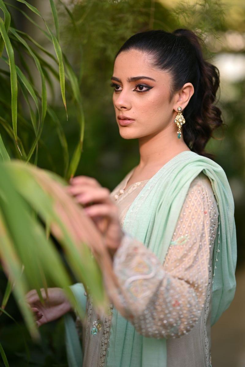 hina khawaja in Natasha Kamal - Peridot - shaded kaftan - Georgette with slip of crepe de chin - 2 Piece
