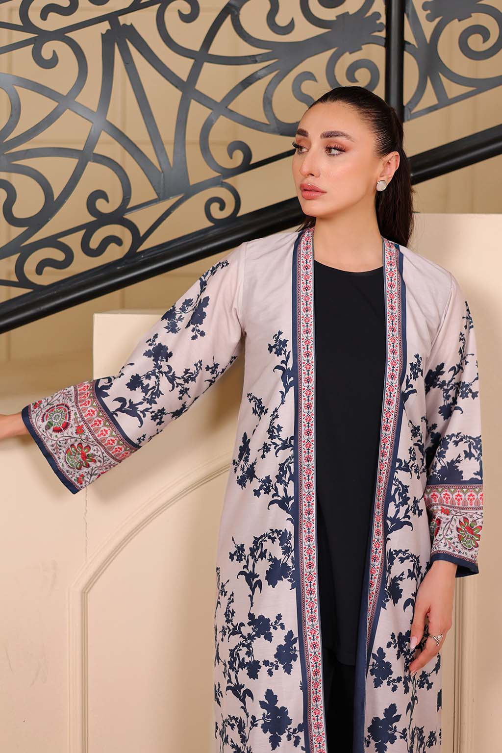 Elevate your everyday style with the Adwears SELENE Skin Tumoro 3PC Set. Designed for effortless elegance, this outfit combines comfort with sophistication. The longline shrug is crafted from breathable Premium Lawn in a soft skin-tone floral print, styled with an open front, round armholes, and full-length sleeves. Contrast facing along the edges enhances the refined look.