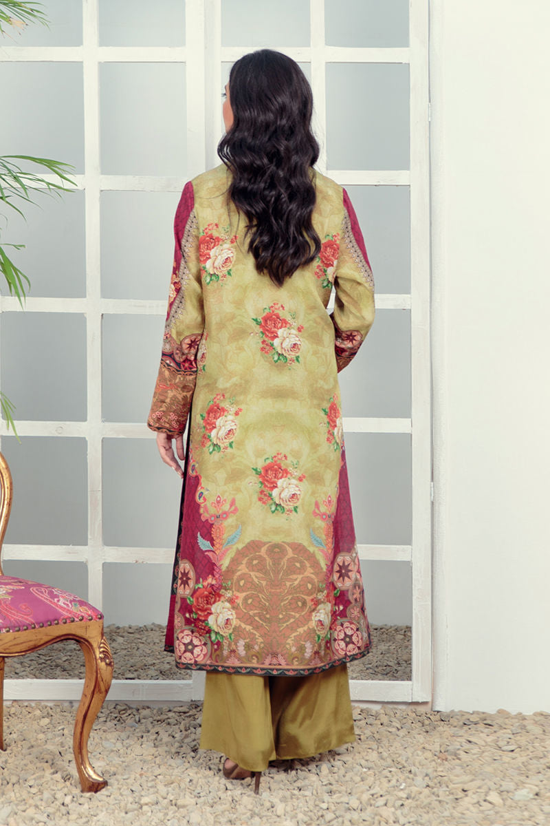 The base of the shirt boasts a rich green hue and maroon. creating a harmonious contrast that captivates the eye. front part is worked with zari and gold motifs, these details showcase an intricate fusion of tradition and modernity. Net Digital Printed Dupatta with Gold Edging is a versatile addition to your wardrobe. Drape it gracefully over your shoulders, loop it around your neck, or simply let it cascade down. Pants & Dupatta can be added seprately.