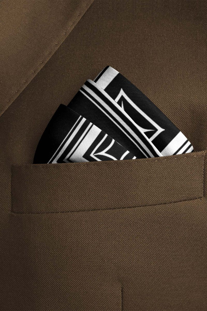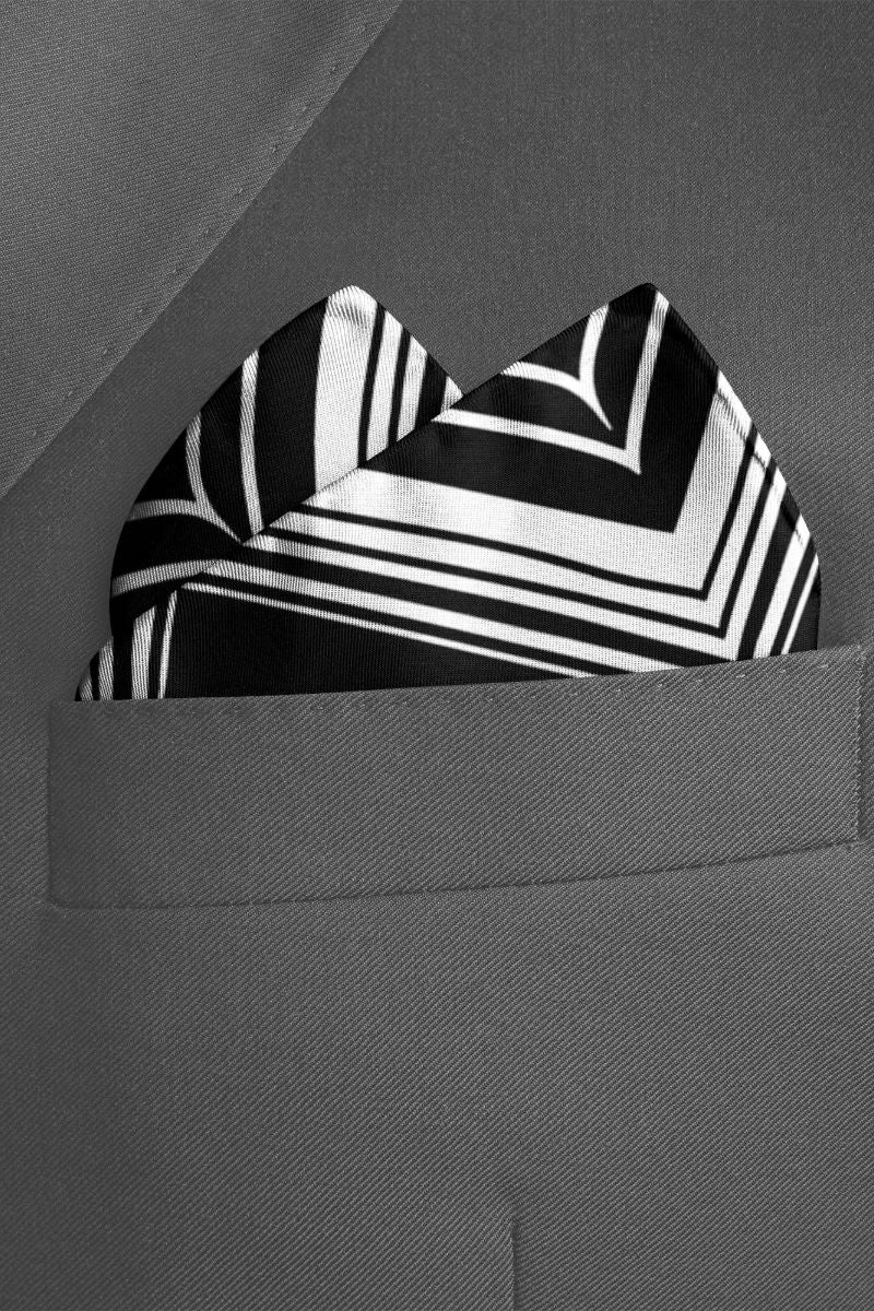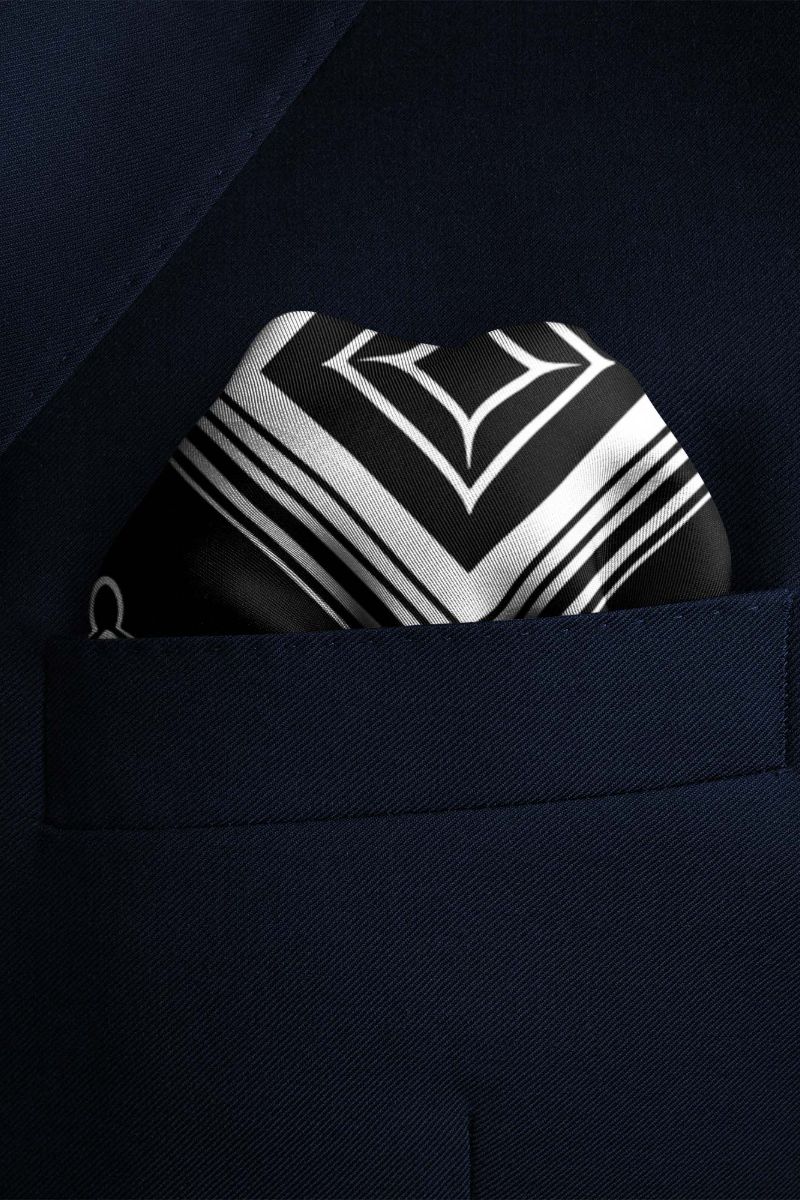 Sophisticated black and white pocket square featuring bold geometric pattern of nested diamonds, exudes modern elegance and...