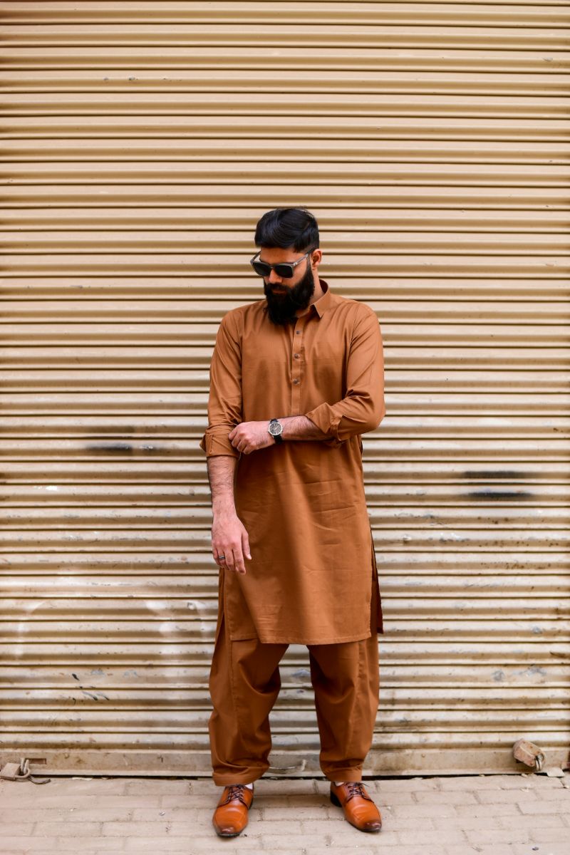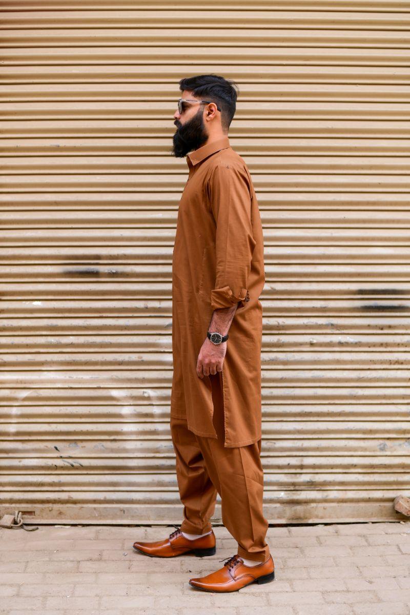 AlifYay - Cotton Kameez Shalwar For Men - Brown - 2 Piece Suit