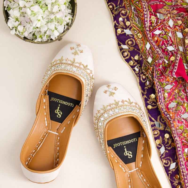 JootiShooti - Mehfil Mirror Ivory Glow Khussa For Women