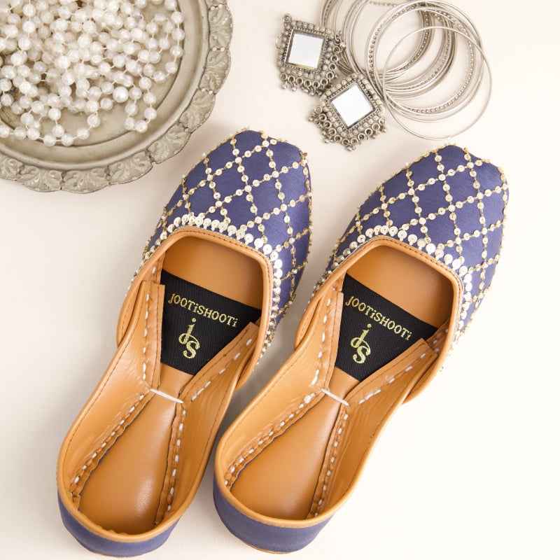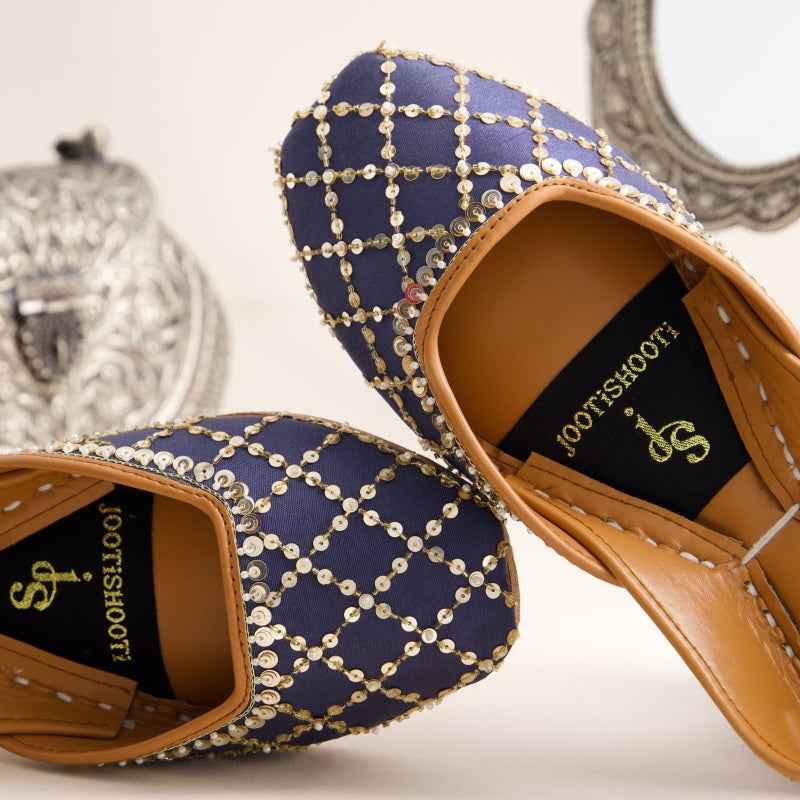 JootiShooti - Shimmer Jaal Midnight Navy Khussa For Women