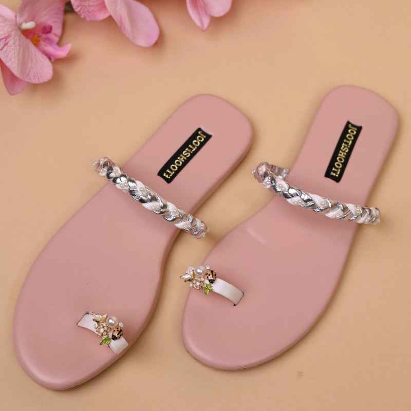 Soft yet striking, these blush-toned sandals are a floral daydream. The silver braided strap adds a touch of shimmer, while the jeweled toe ring blossoms with elegance. Perfect for garden soirées or moonlit strolls, they’re a tribute to femininity in full bloom.