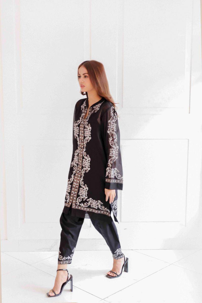 Shamaeel - EE-01 - Black - Sheesha Silk & Khaddi Silk - 2 Piece