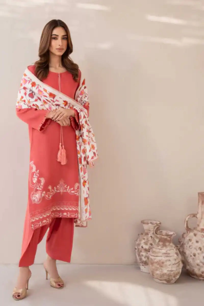 Natasha Kamal - Rise - coral - Woolen - 3 Piece