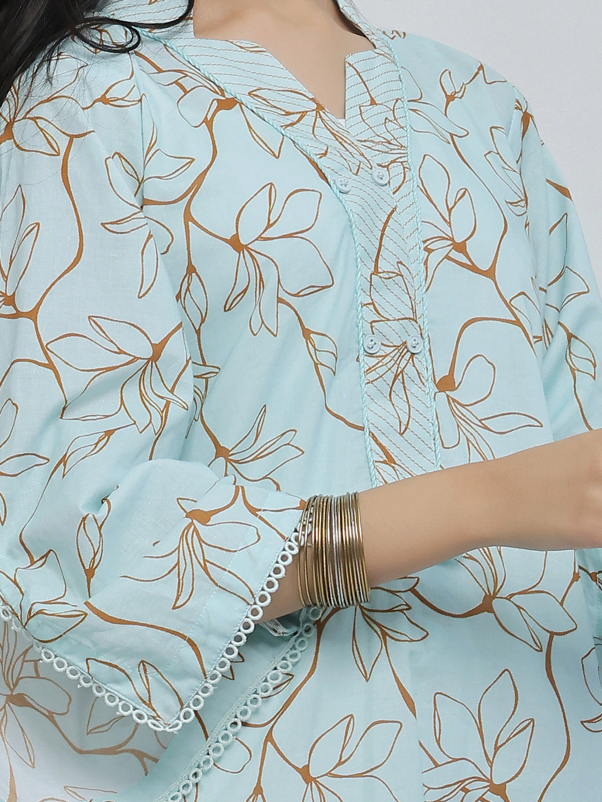 Oaks - Embroidered Lawn Suit For Girl - Ferozi - 2 Piece