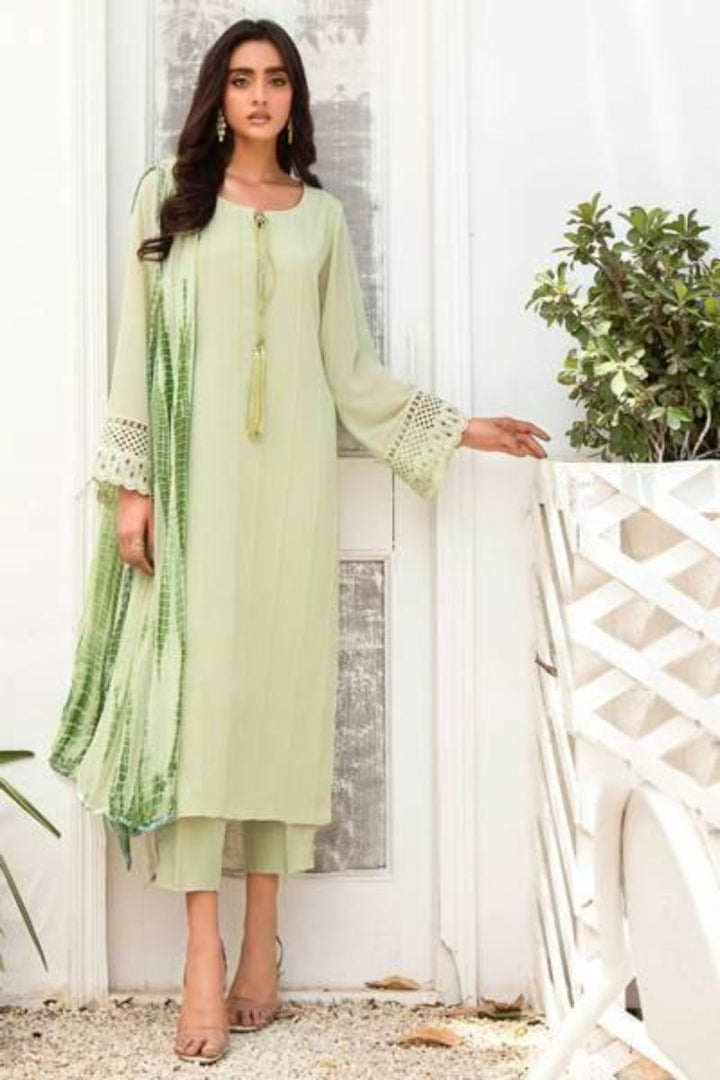 Frosty lime pintex tunic with tie duppatta (one piece) The 'Ema' comes in the season's coveted frosty lime hue. Cut from gorgette to a simplistic shirt-inspired design, it's finished with pintex, embroidered cutwork sleeves and a tassel to the front. Loaded with throw-on-and-go appeal, wear it with our tie dye duppattta for a spritzy summer look.