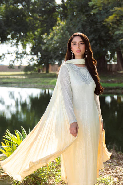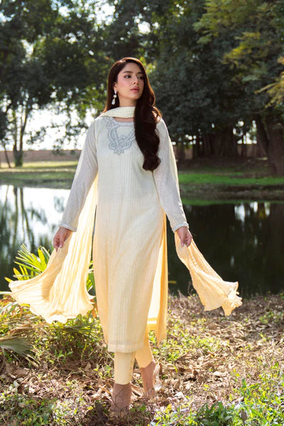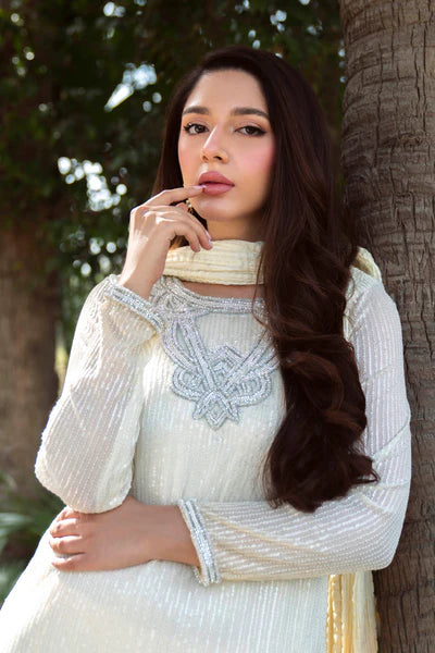 Natasha Kamal - Sequinned Mesh Net Daisy Suit For Women - Yellow - 3 Piece