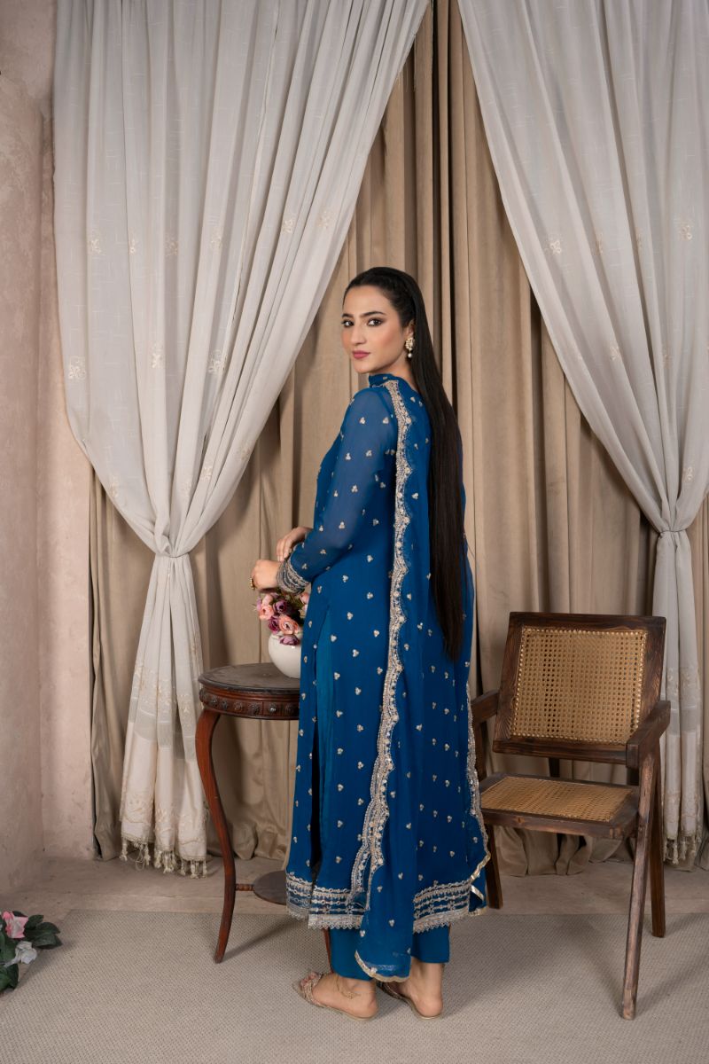Reema Ahsan - Surrina - Chiffon & PK Raw Silk - Teal - 3 Piece