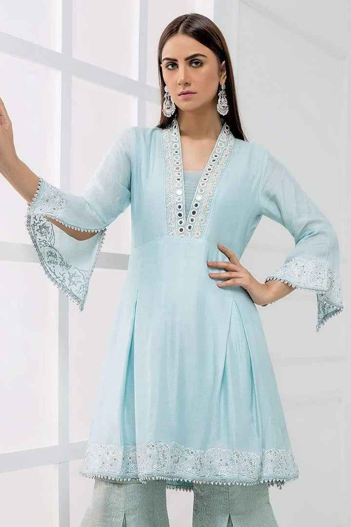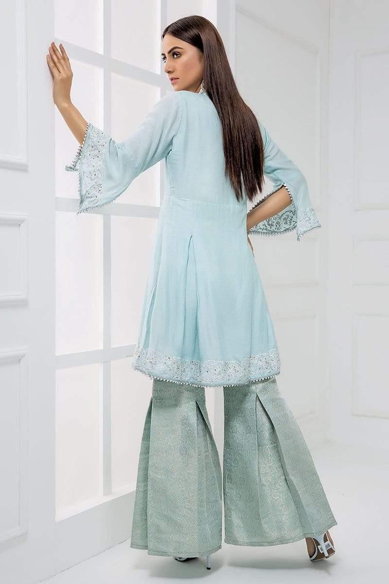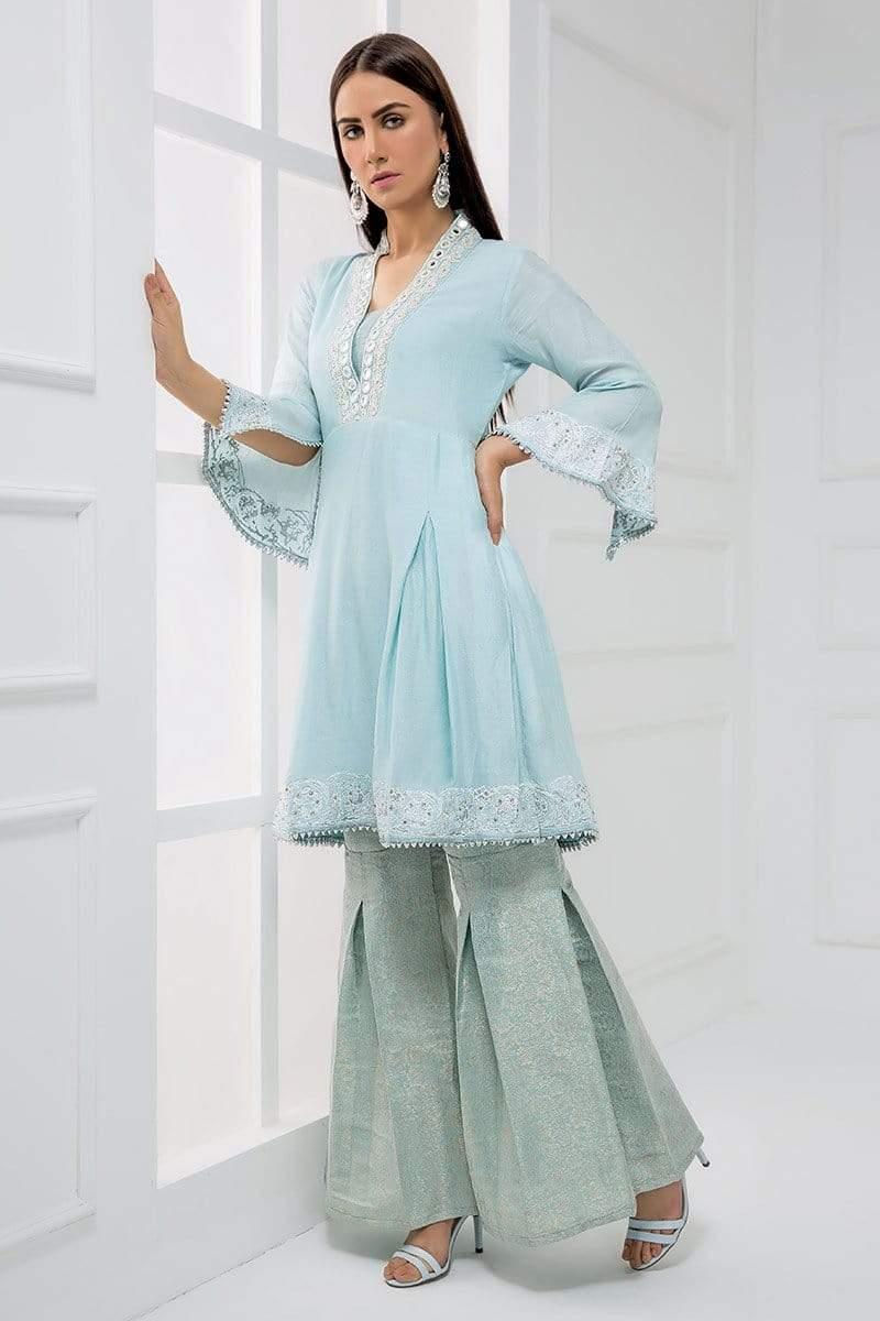 Sadia Aamir - Light Blue Ice Flow - SA-LP06 - Cotton - Jamavar Gharara - 1 Piece