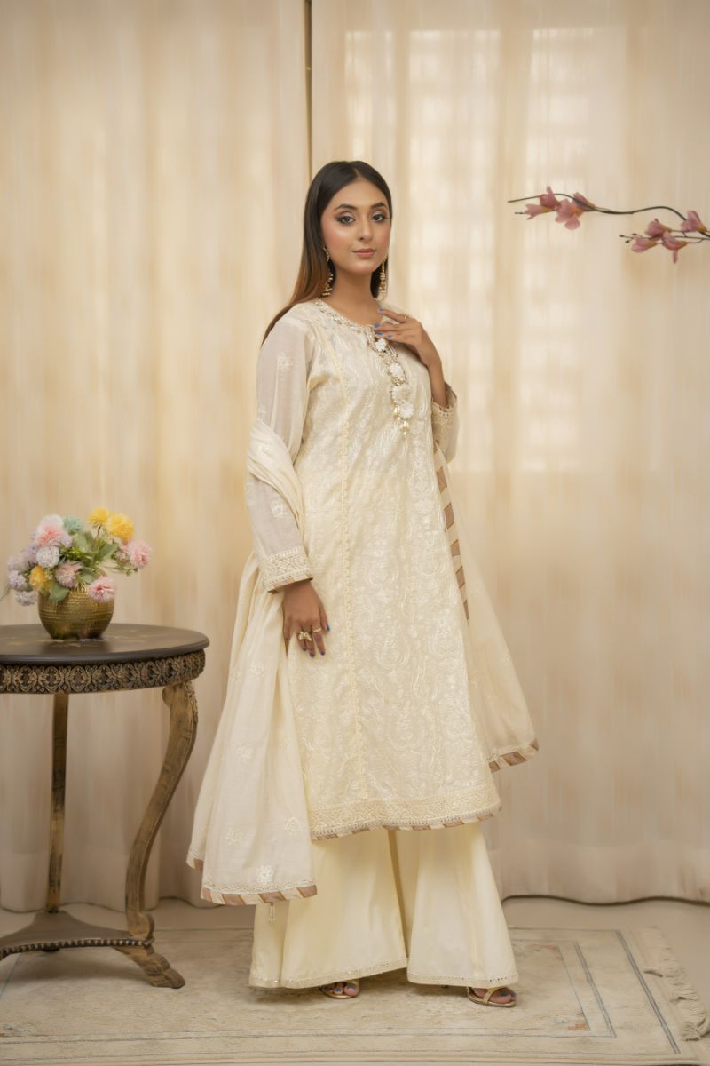 Sadia Aamir - Minara - Ivory - Paper Cotton - 3 Piece