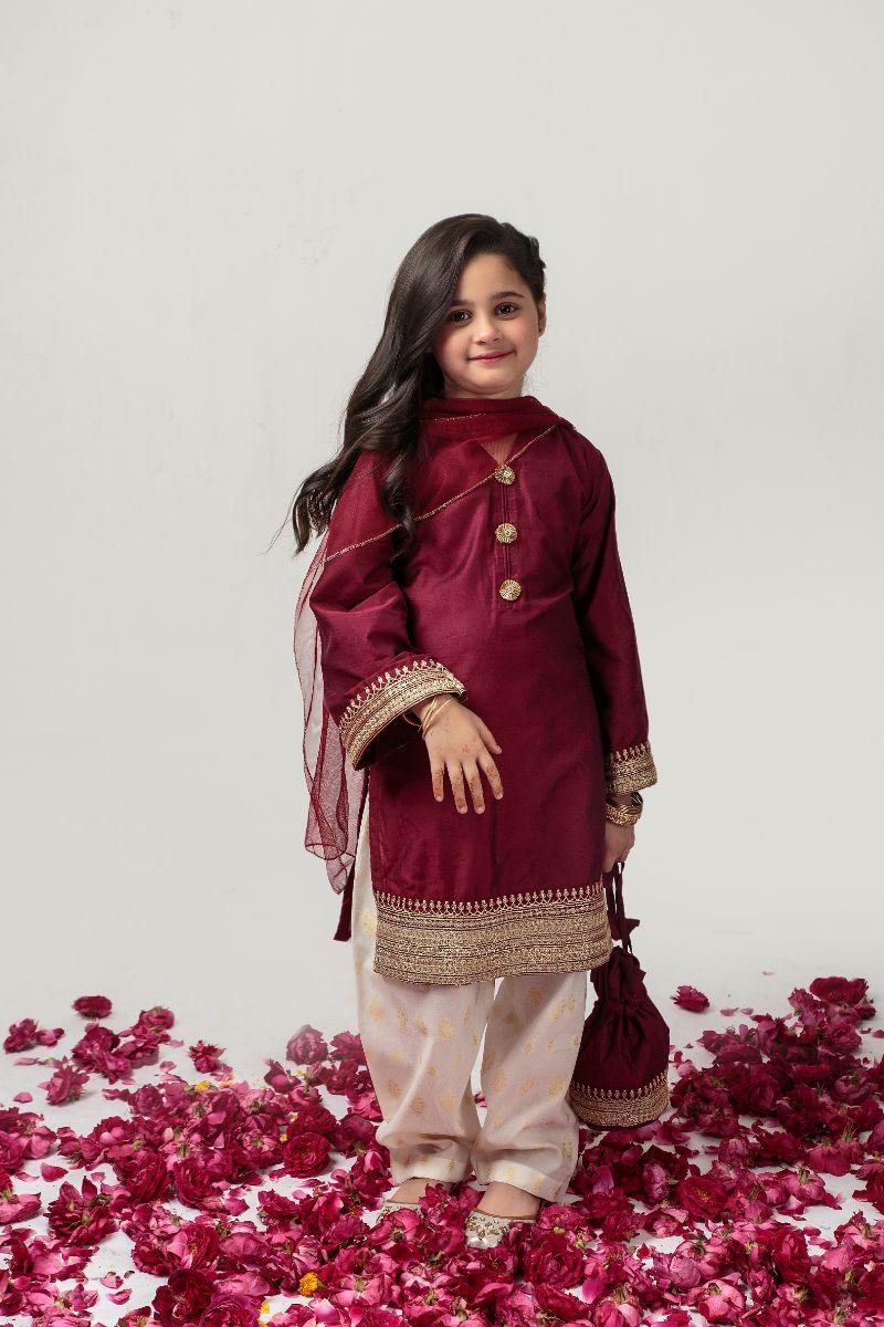 Cheeco Chic - MJSEID24 - Cotton Silk & Jacquard - burgundy maroon & White - 3 Piece