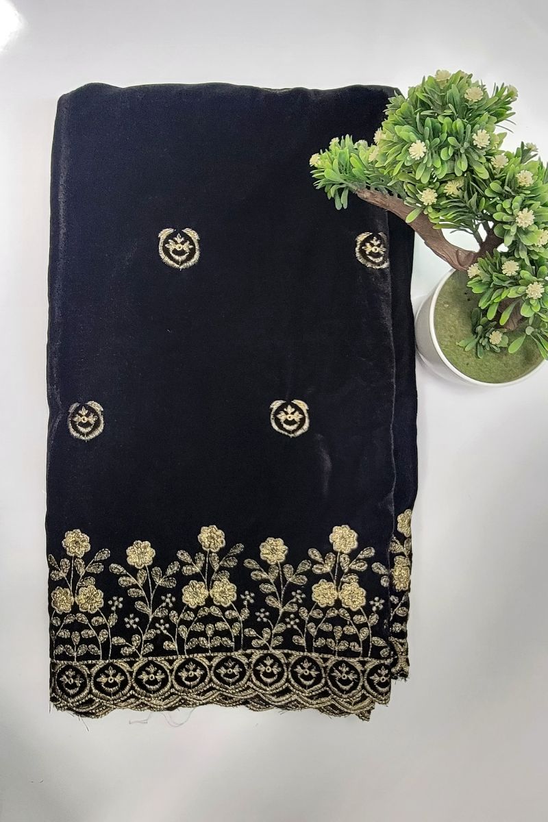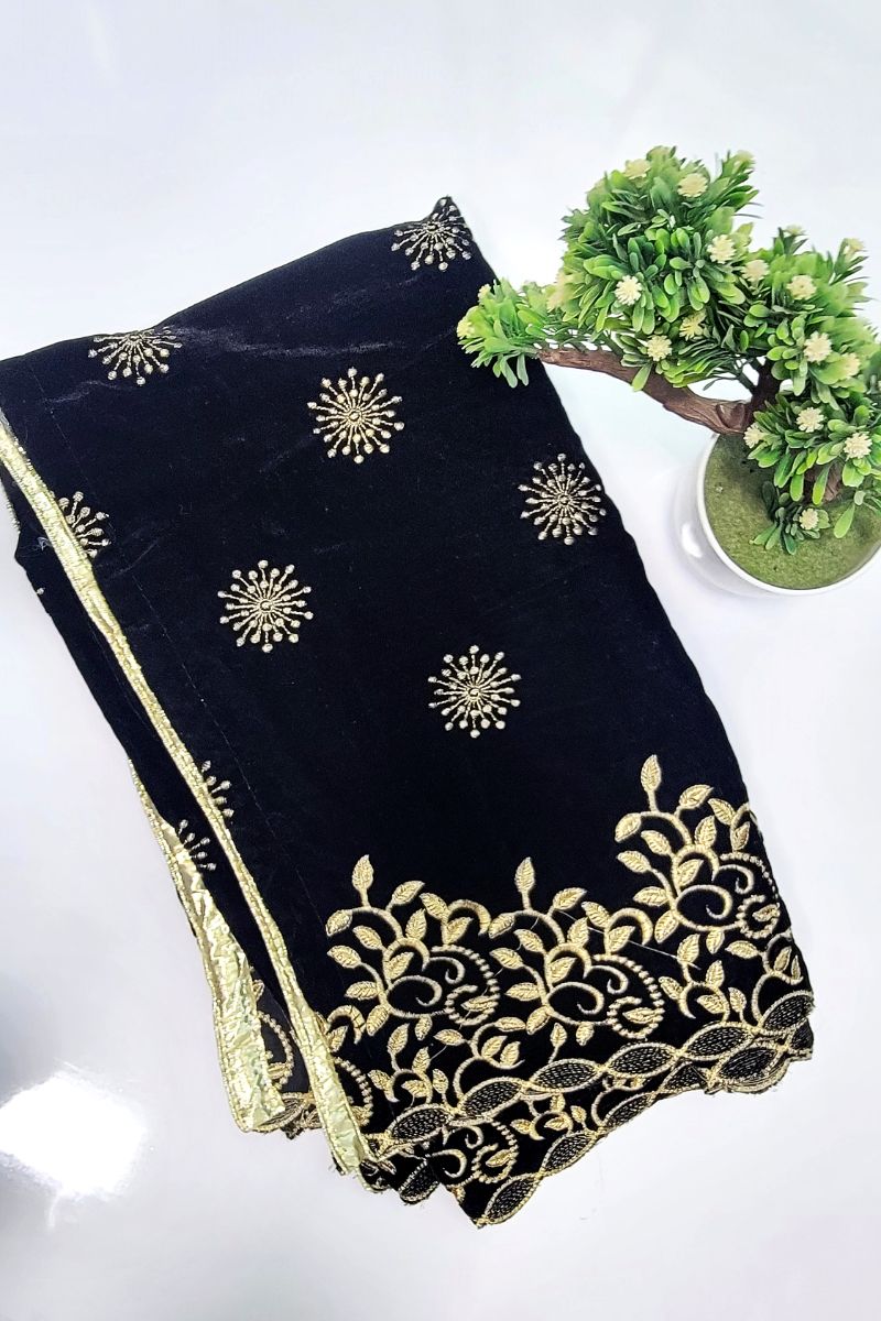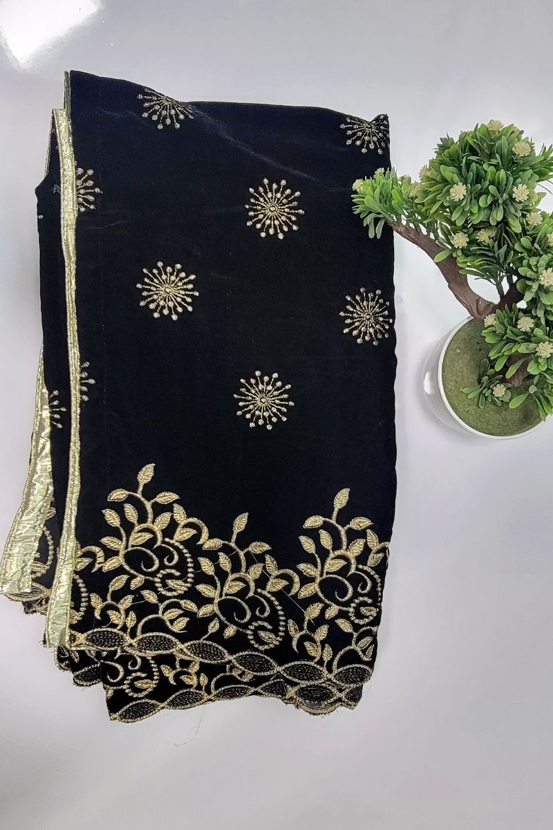 Designs by Amina - Black - Velvet - Shawl - 1 Piece - 0044