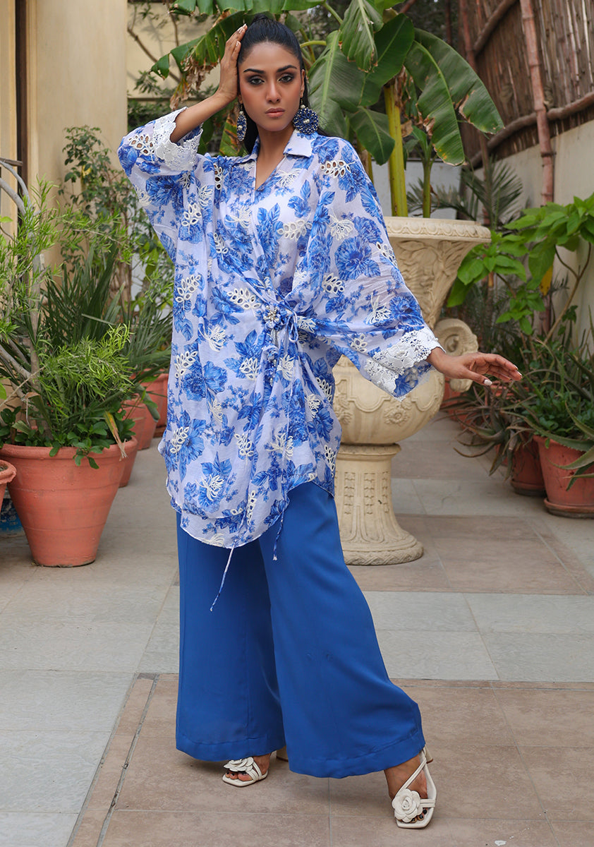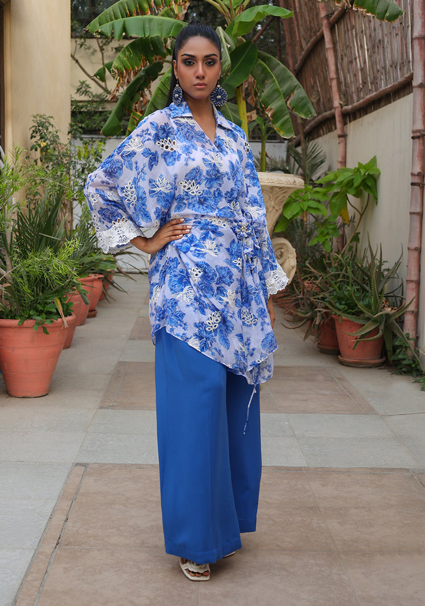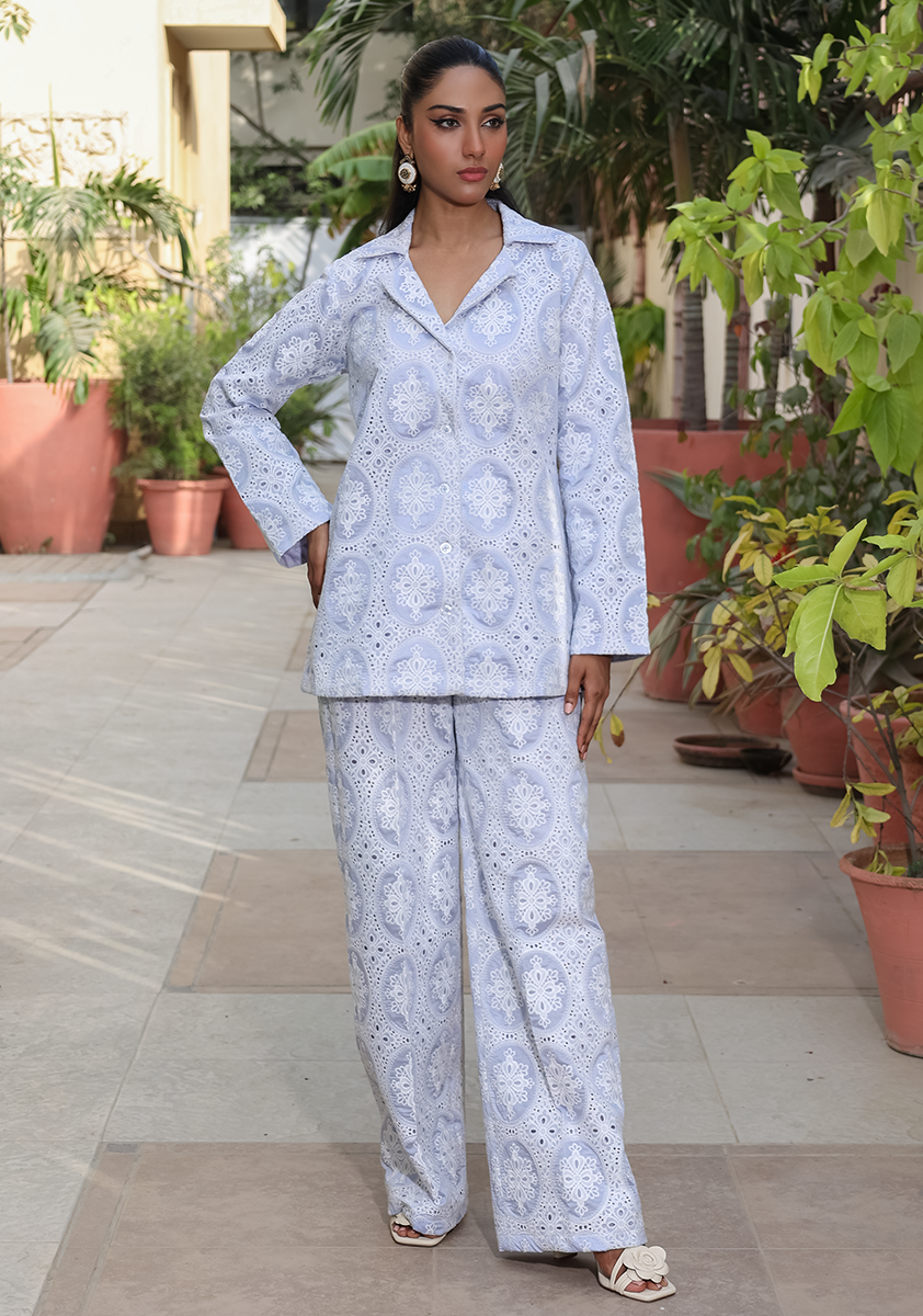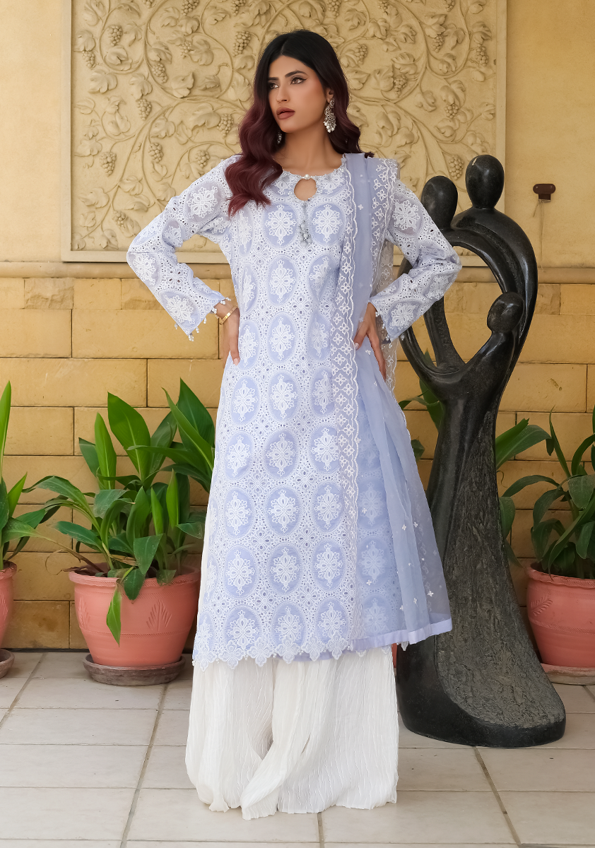 Maria Osama Khan - Neelum Ice Blue Organza / Raw Silk Suit For Women - 4 Piece