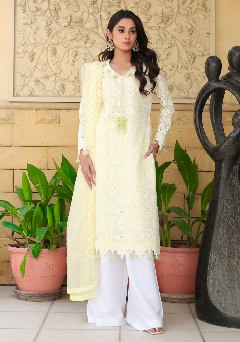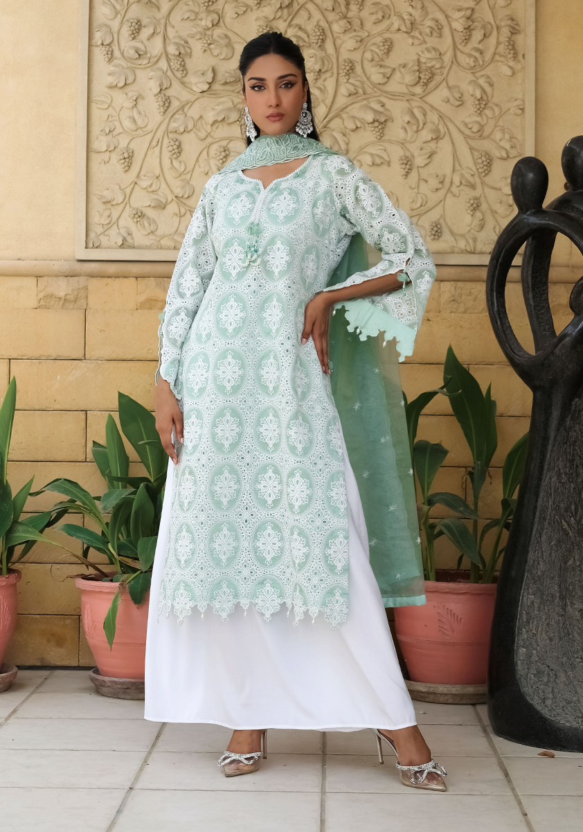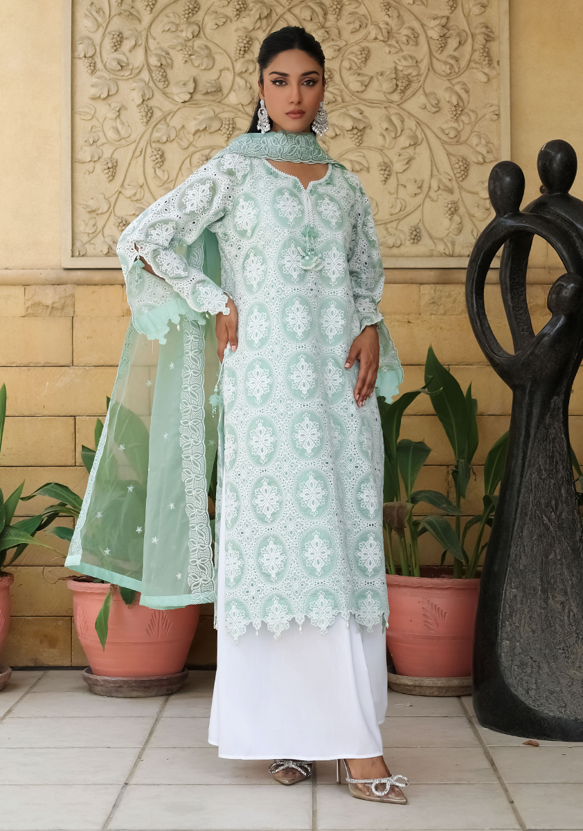 Cross Stitch - WHISPERING PETALS Marina Green Unstitch Suit For Women - 3 Piece
