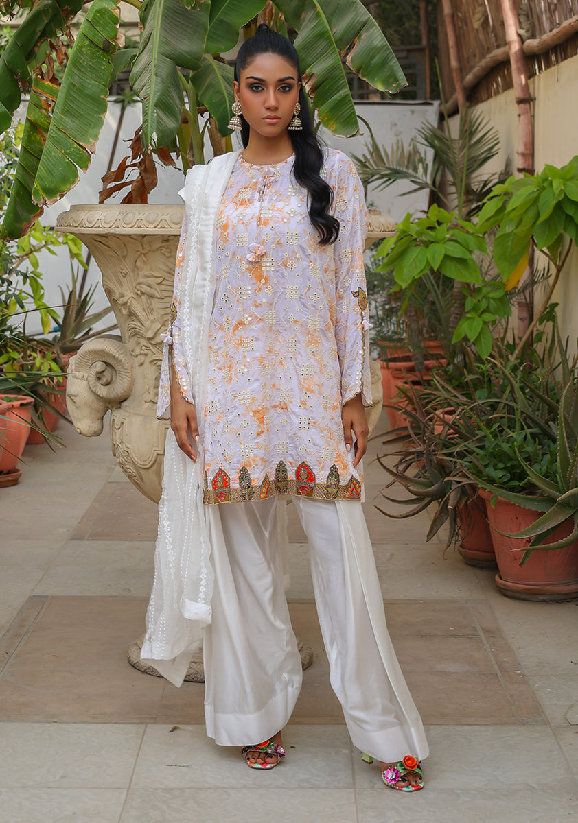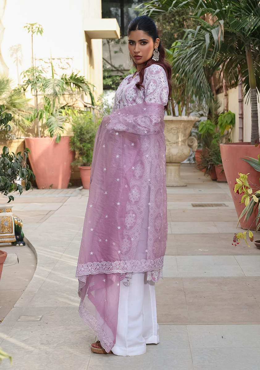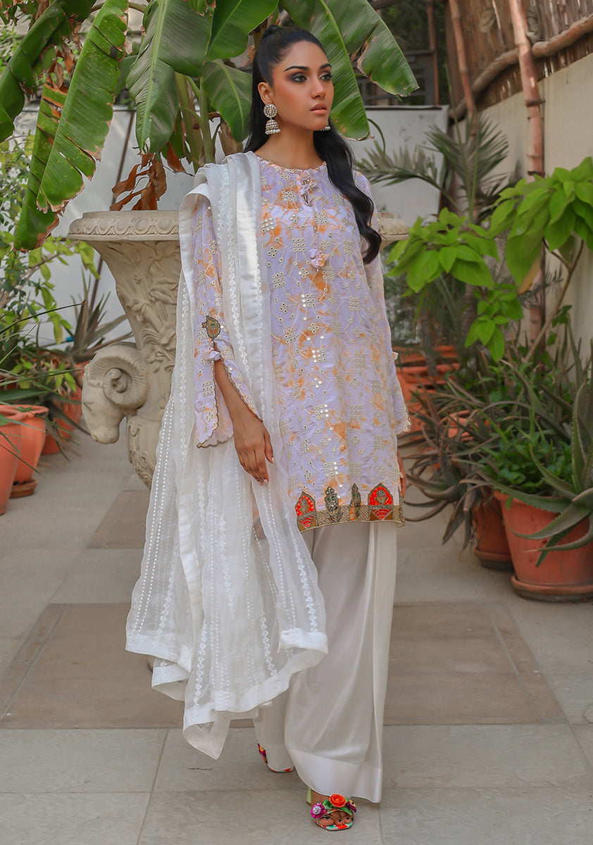 Maria Osama Khan - Lavina Lilac Organza / Raw Silk Suit For Women - 3 Piece