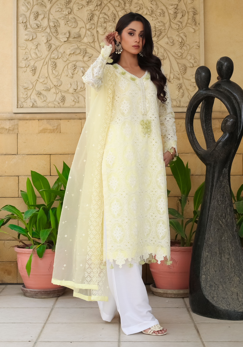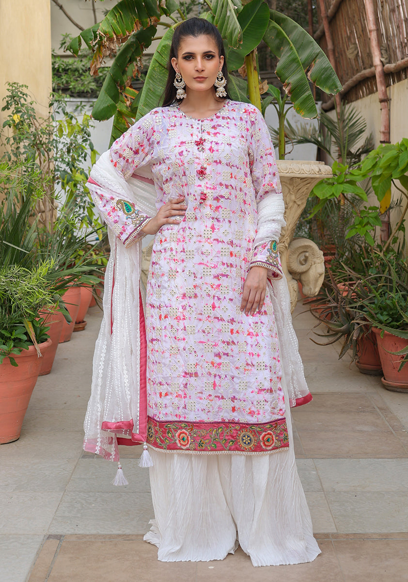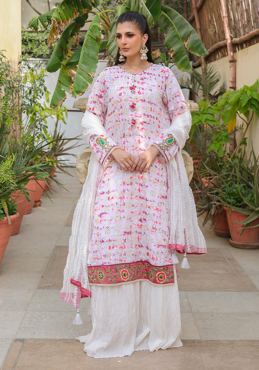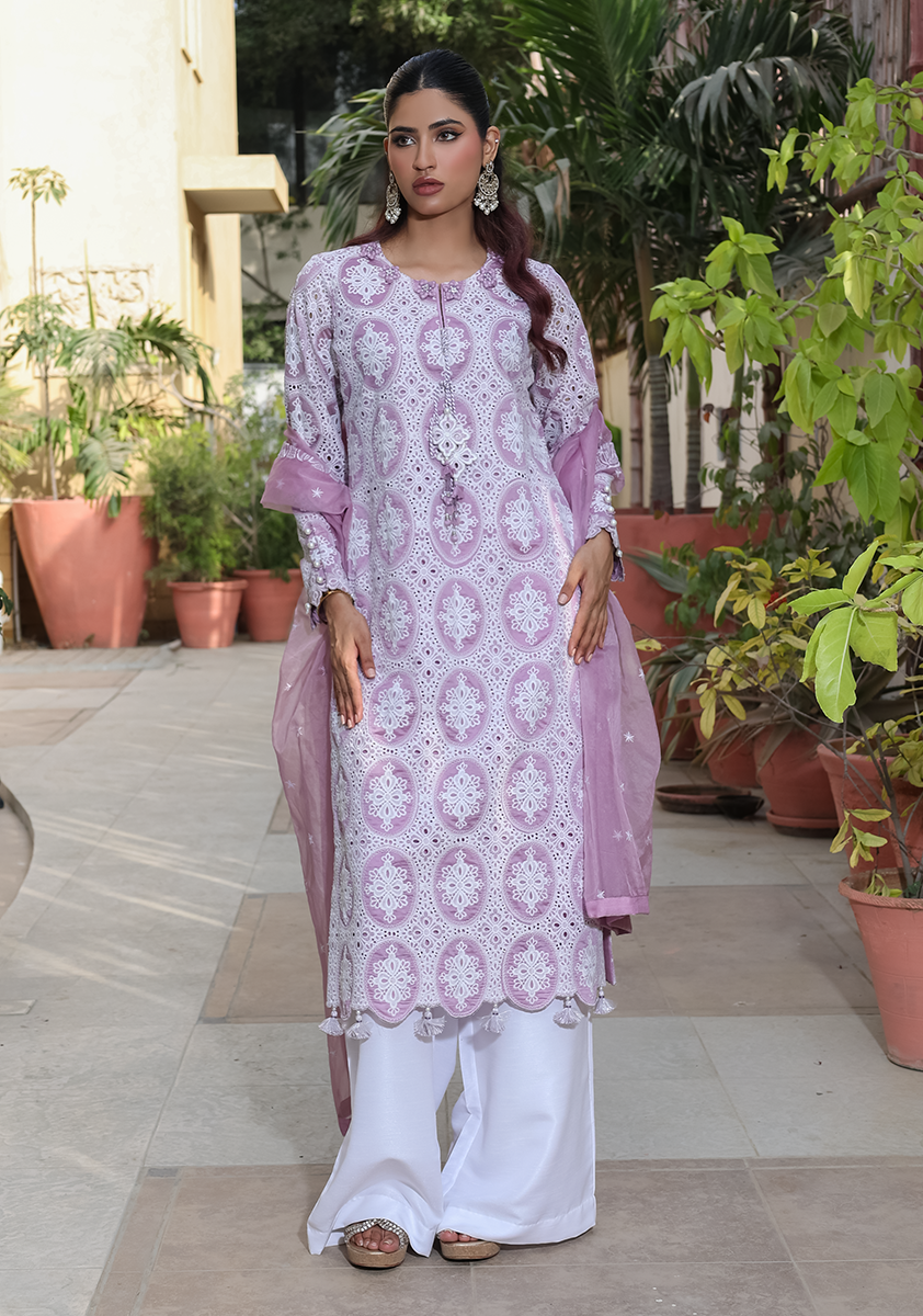 Maria Osama Khan - Lavina Lilac Organza / Raw Silk Suit For Women - 3 Piece