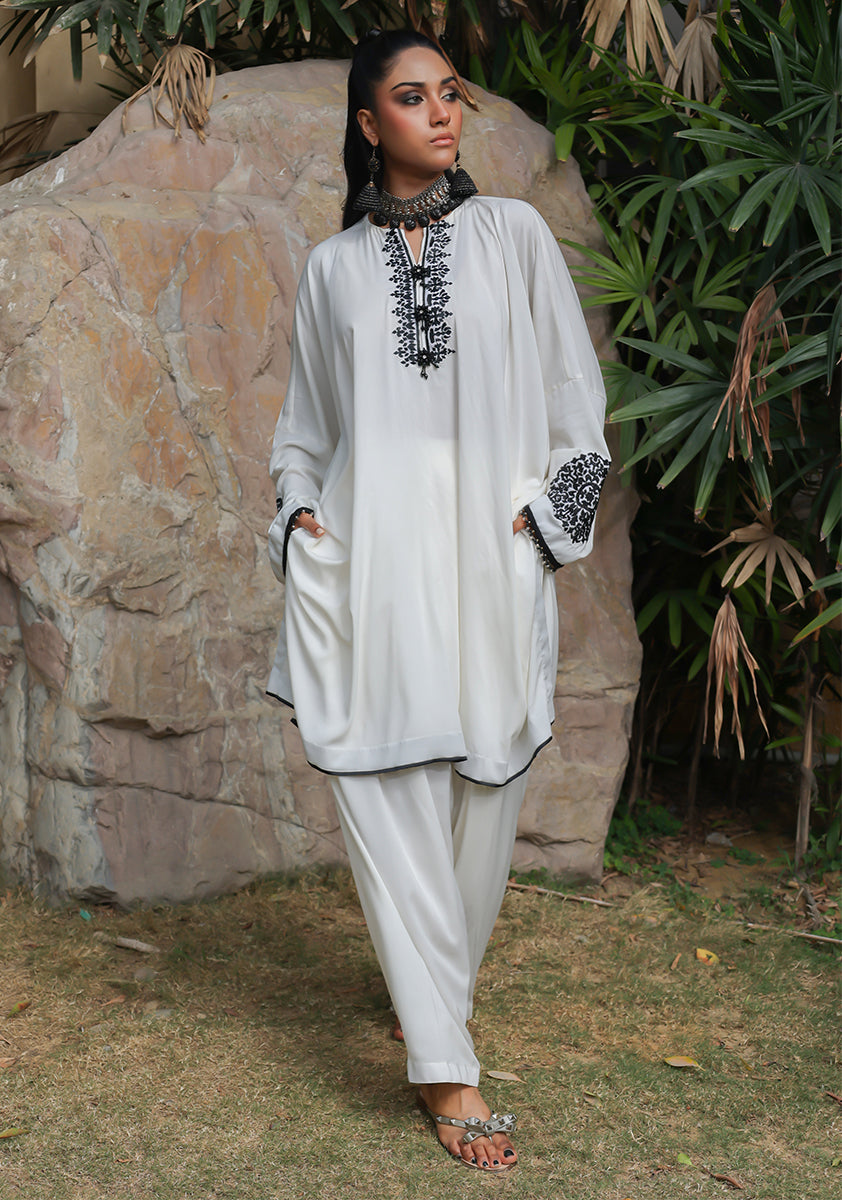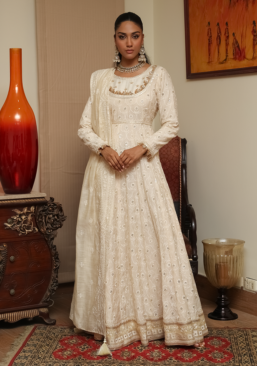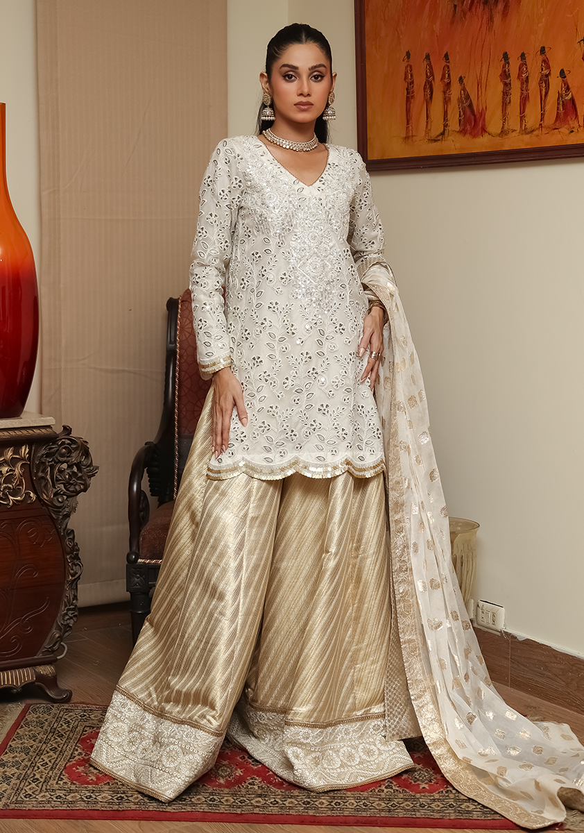 Gulabo - Inara Silk Chiffon Embroidery White Gold Cape Jacket For Women - 1 Piece