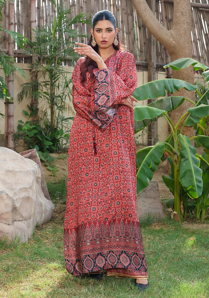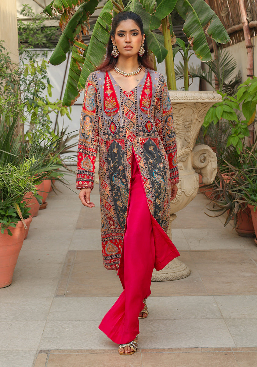 Cross Stitch - ROUGE LUXE Marina Maroon Unstitch Suit For Women - 3 Piece