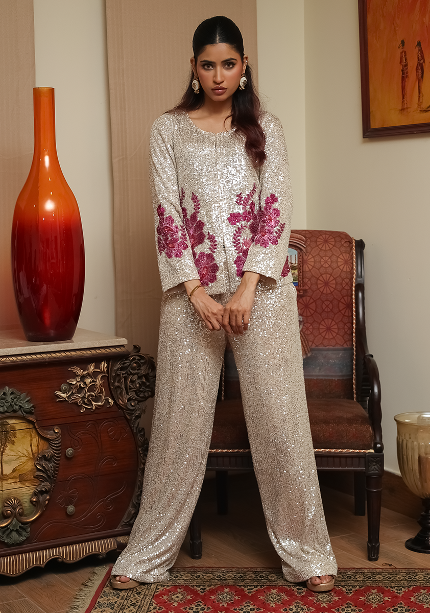 Maria Osama Khan - Gulbahar Pink Organza / Raw Silk Suit For Women - 3 Piece