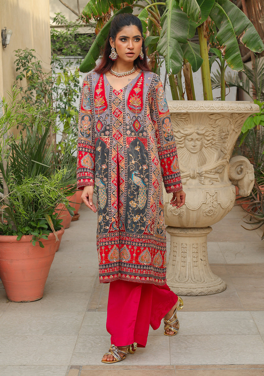 Cross Stitch - ARONA HAZE Marina Grey Unstitch Suit For Women - 3 Piece