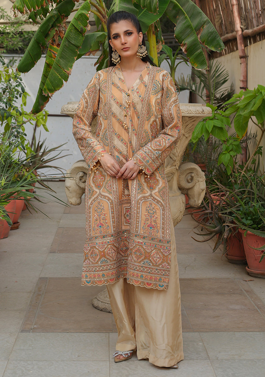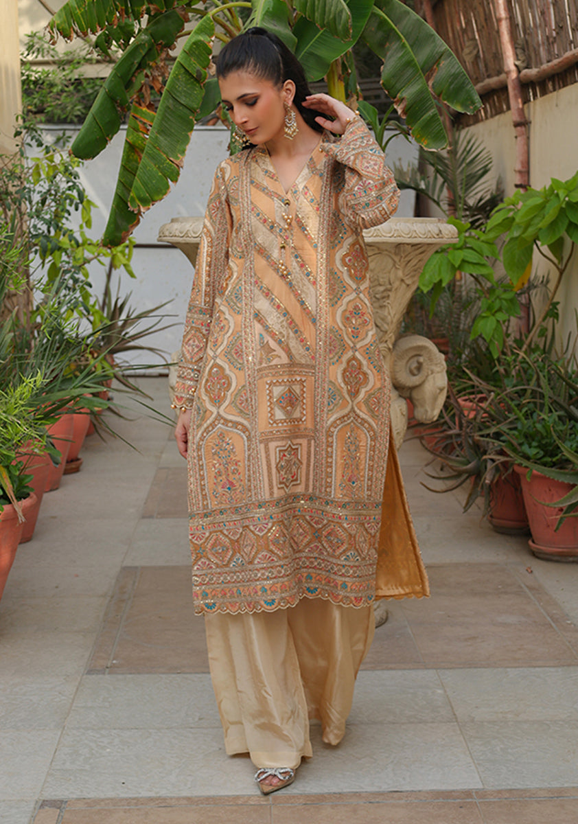 Maria Osama Khan - Zarmin Brown Organza / Raw Silk Suit For Women - 4 Piece