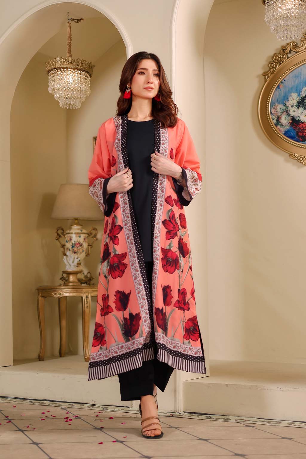 Light, elegant, and effortlessly chic—the Iris Shrug from Adwears LUMINE Collection adds a soft feminine touch to your wardrobe. Crafted from breathable Premium Cambric in a peach hue with a delicate Iris floral print, it features a graceful longline, front-open design enhanced with sparkling crystal embellishments.