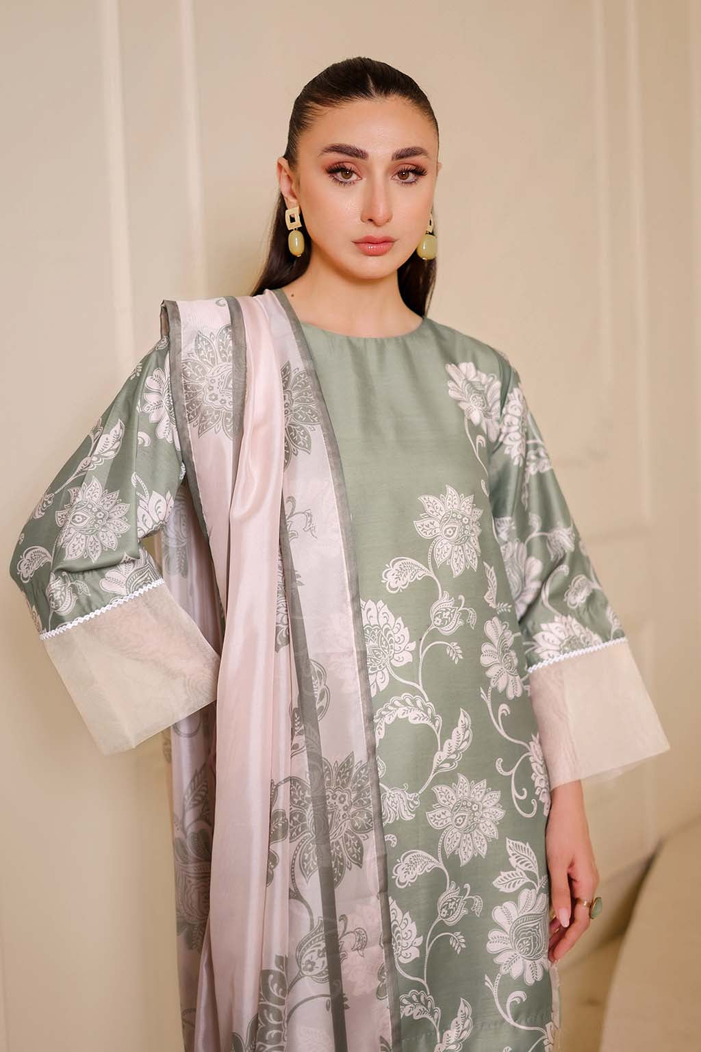 Paired with a matching trouser and a coordinating printed dupatta, this 3-piece ensemble blends charm and comfort—perfect for chic, everyday wear.
