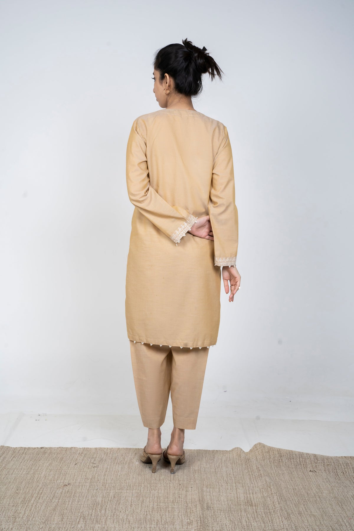 Embrace the Chambray Winters 2025 collection with this elegant Beige 2-piece set featuring solid embroidery that adds refined texture and charm. Paired with tulip-shaped trousers, it offers a fresh and graceful silhouette perfect for stylish winter wear. This ensemble blends comfort and sophistication, making it an ideal choice for those seeking understated elegance with a modern touch.