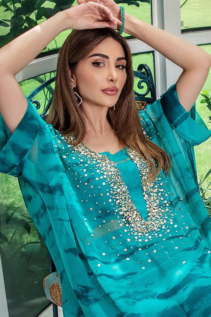 Malook - Caramol - Chiffon Long Shirt & Trouser - 2 Piece