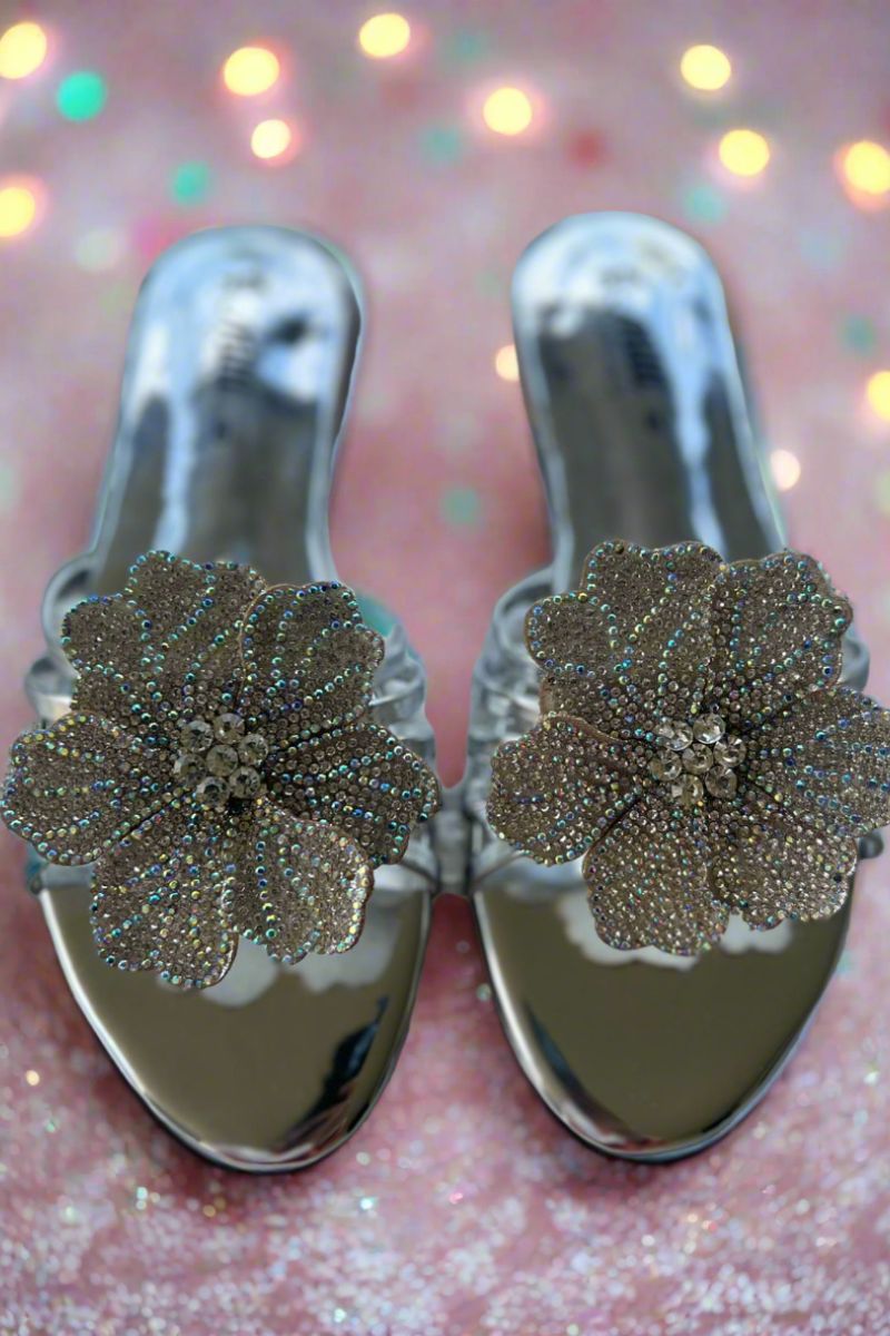 MILLI SHOES - Fancy Floral Slides - Silver - Slides