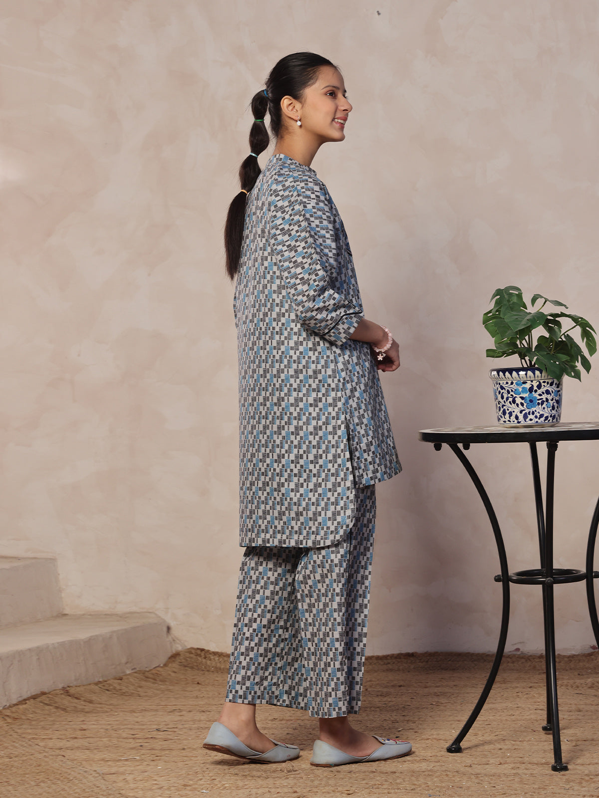Oaks - Embroidered Pret Shirt & Trouser Lawn Grey & Blue - 2 Piece
