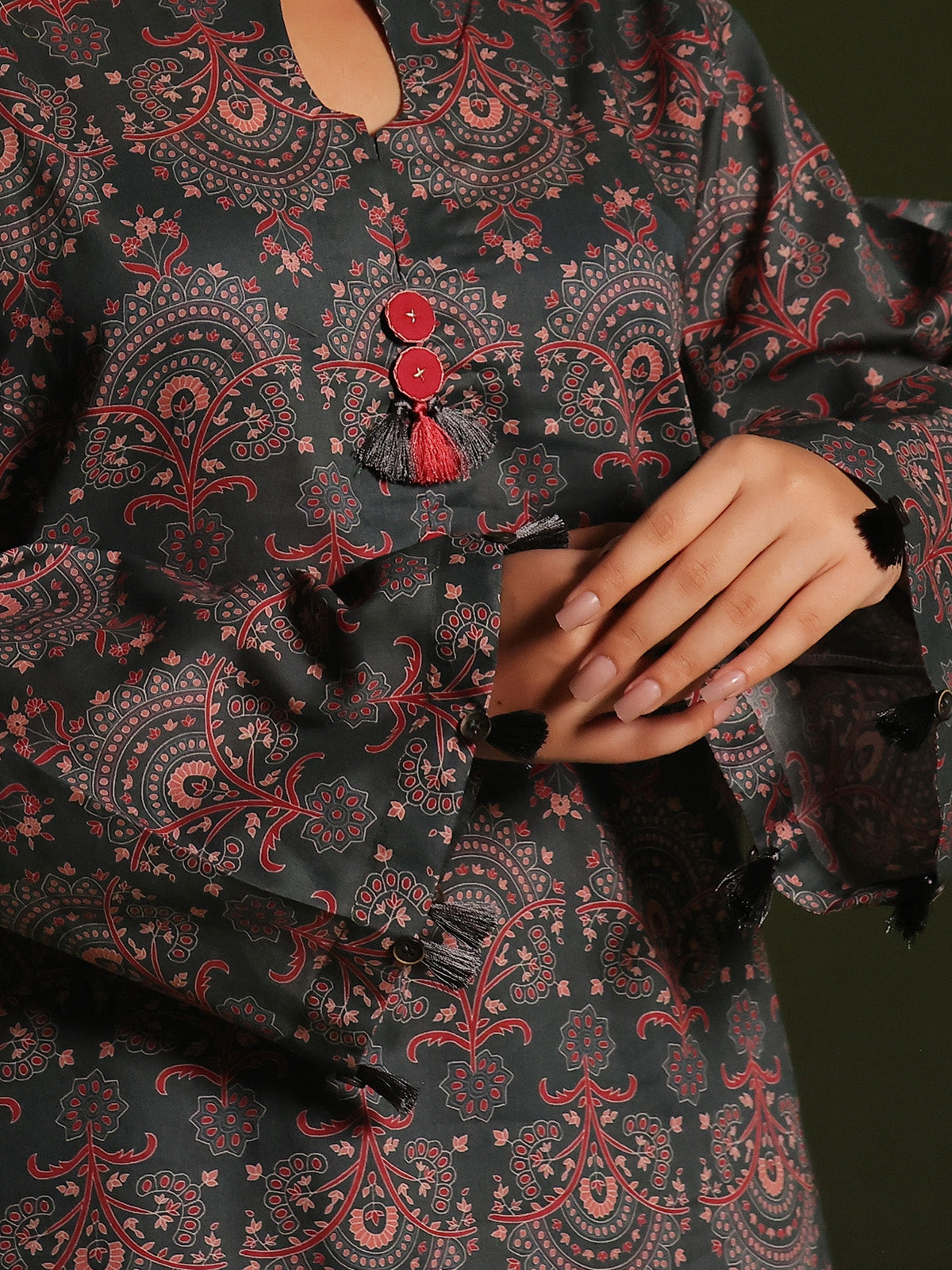 Oaks - Printed Unstitched Cambric Green - 2 Piece