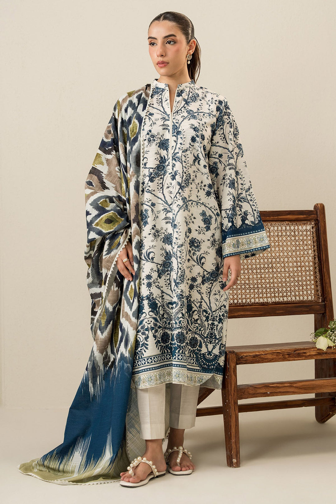 Cross Stitch - Beige Verve - 3 Piece - Khaddar Printed Suit - Unstitch