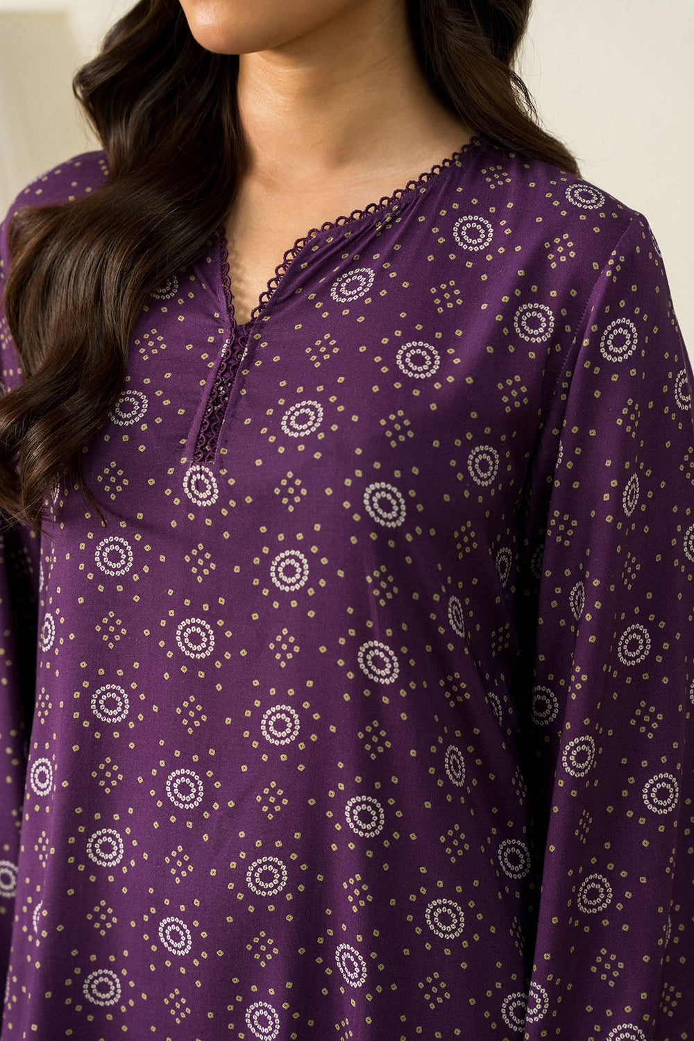 Cross Stitch - Deep Mauve - 2 Piece - Linen Printed Suit - Unstitch