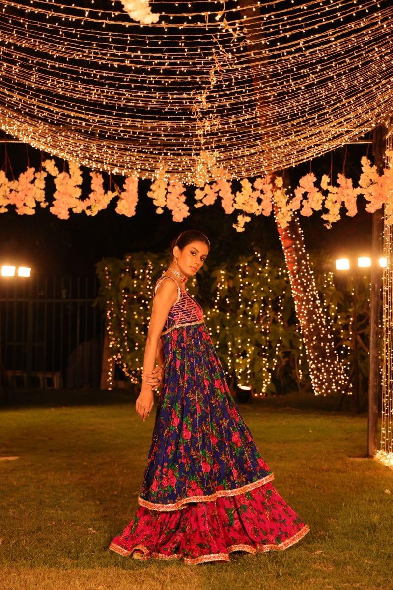 Pinktree - Bomb Shell - Gharara & Choli - Deep Blue & Hot Pink - 2 Piece