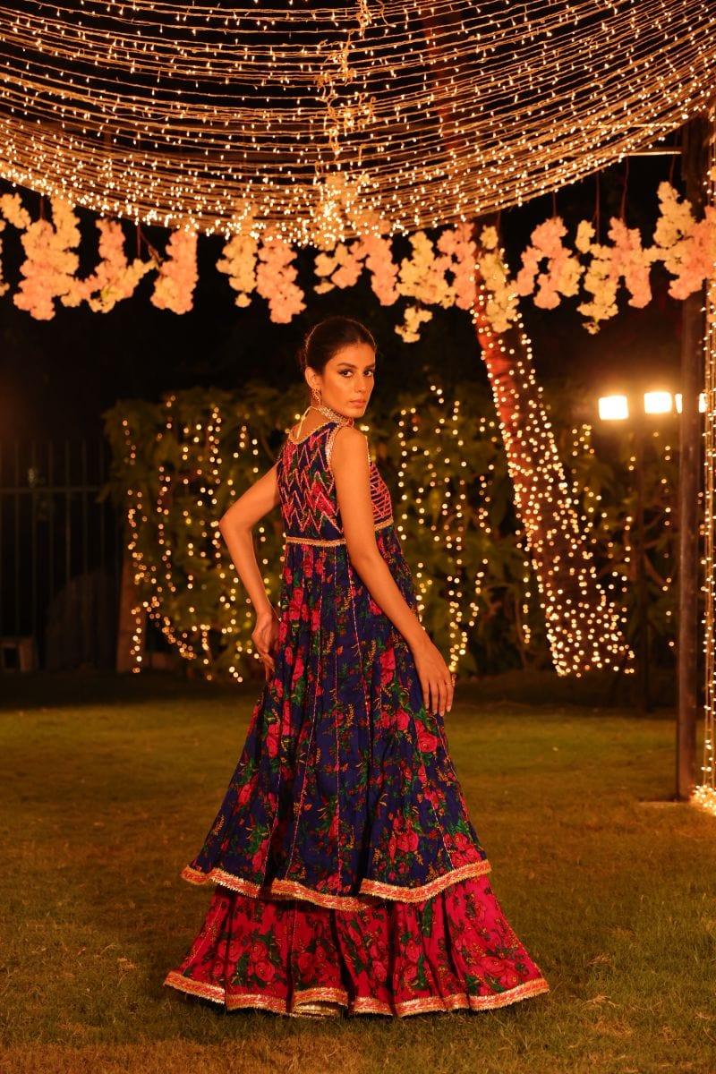 Pinktree - Bomb Shell - Gharara & Choli - Deep Blue & Hot Pink - 2 Piece - Studio by TCS