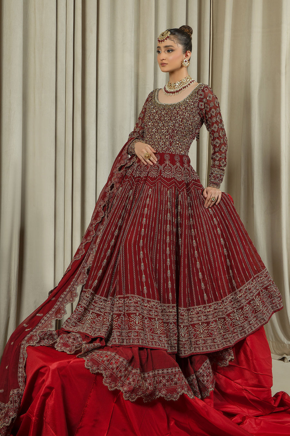 Arif Ashraf - Manavati - Maroon - Chiffon and Raw Silk - 3 Piece