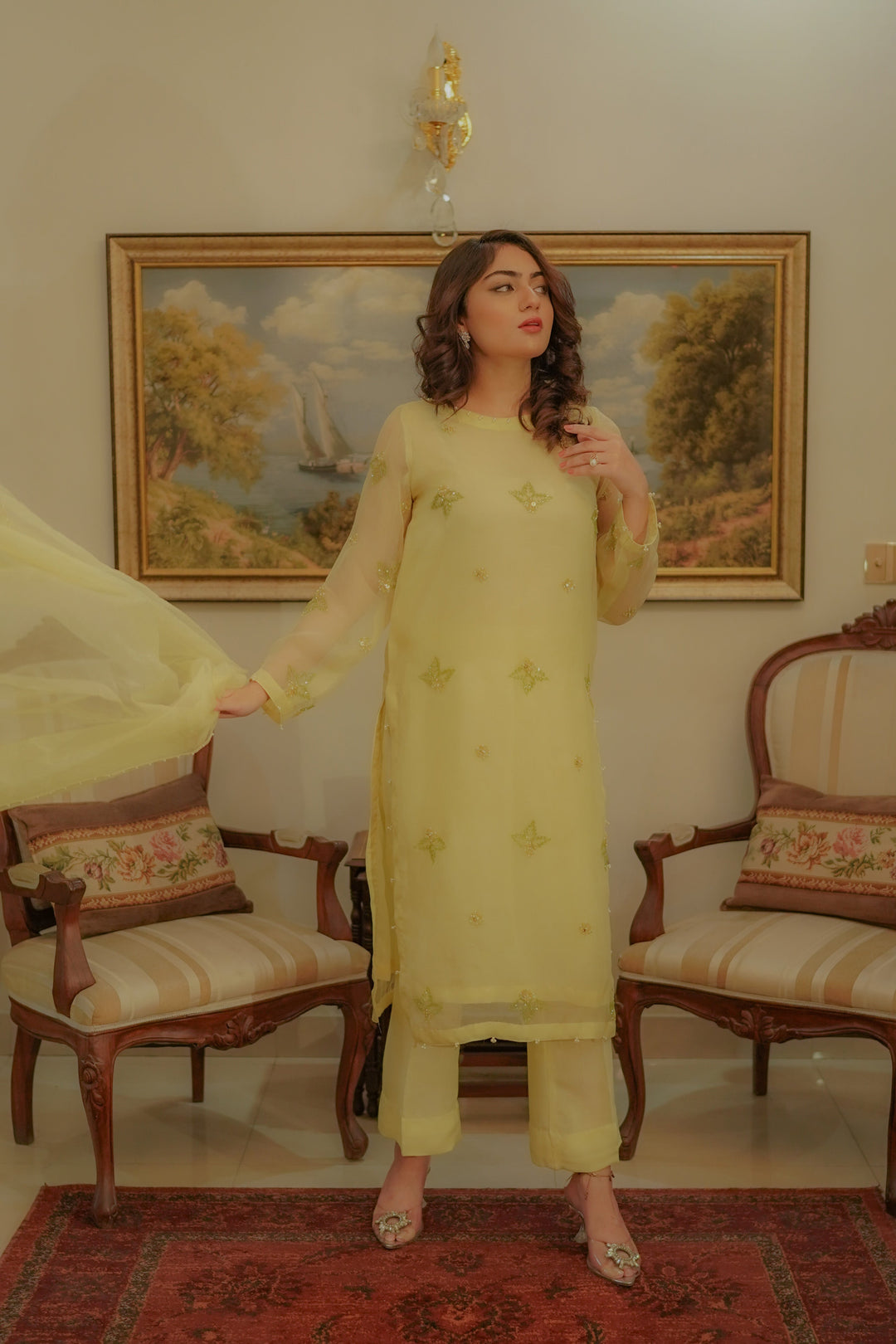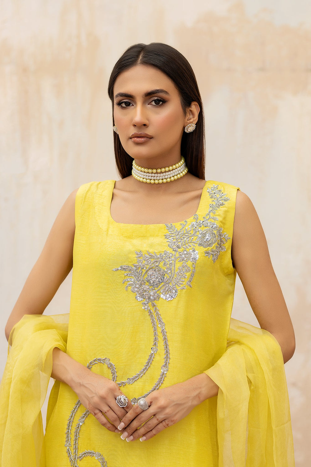 Syah - Zamurd - Organza - Pastel Yellow - 3 Piece