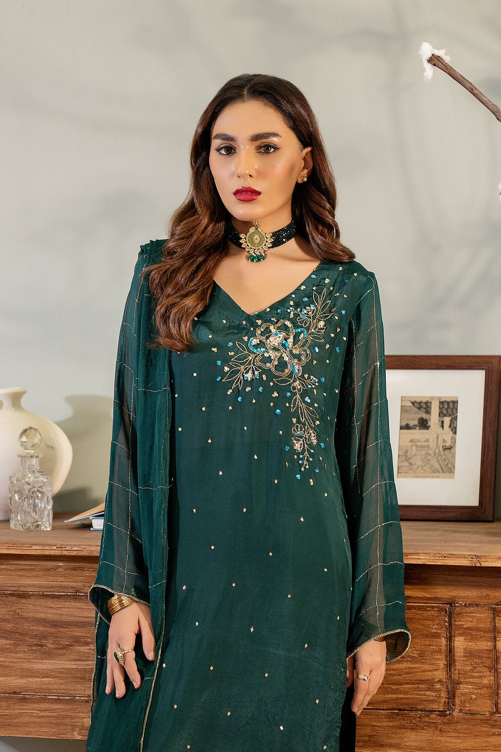 Shehrnaz - Silk Angarkha With Detailing With Coordinated Azaar And Dupatta – SHKK-1092