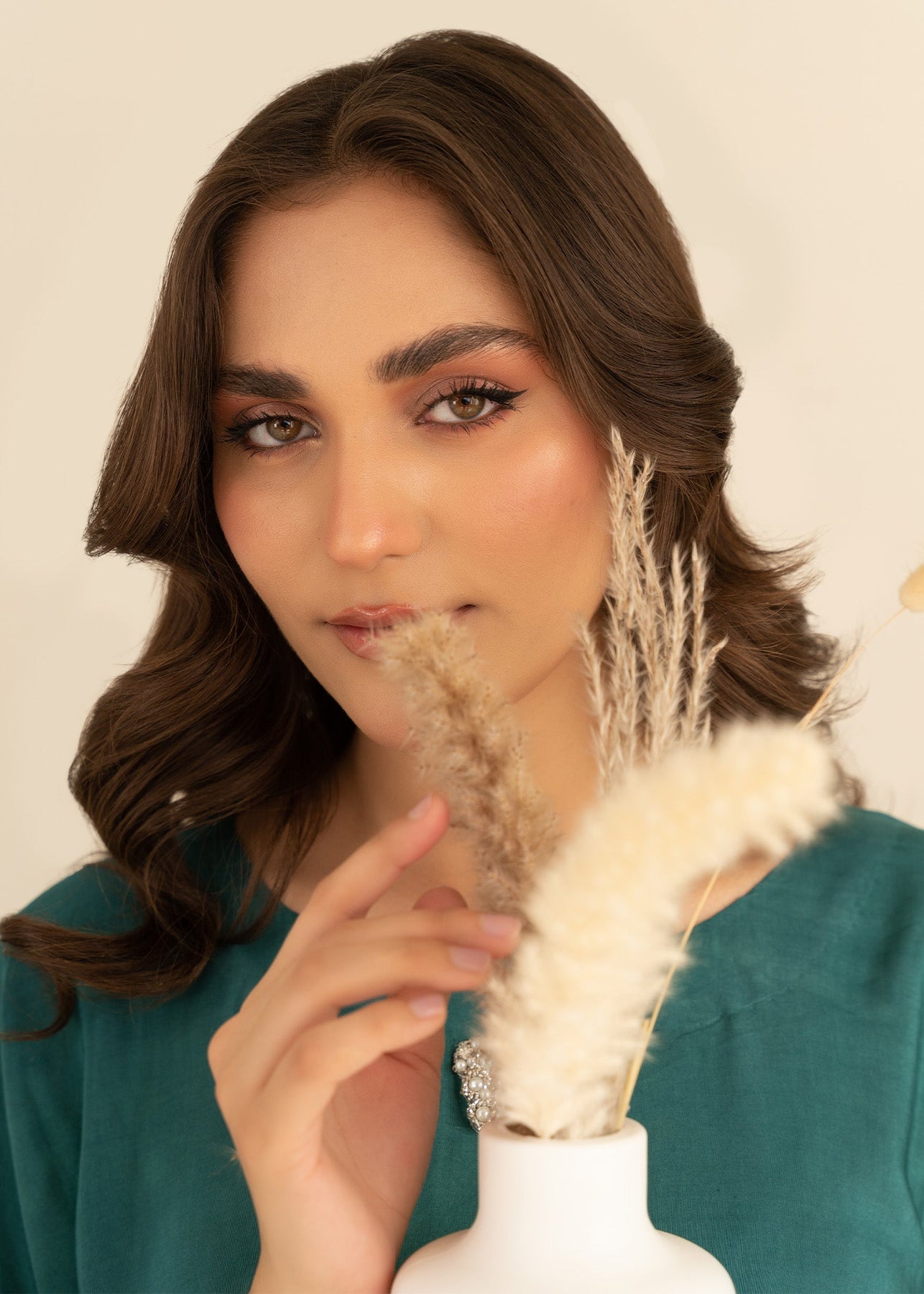 A classy Sea Green silk set that has phenomenal details of Dabka and Sequins, paired with sleek shalwar.
