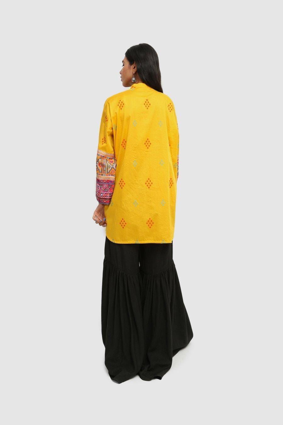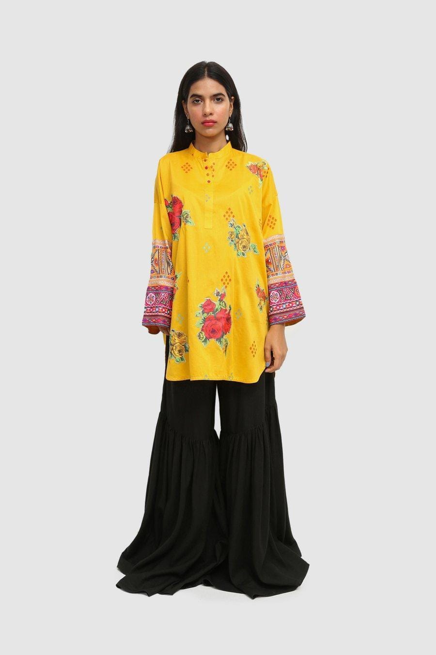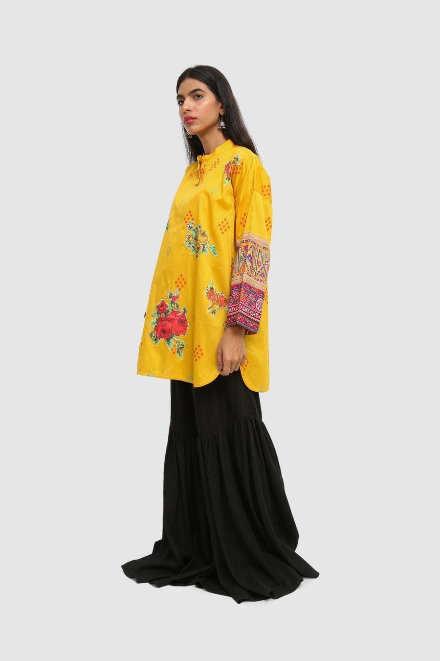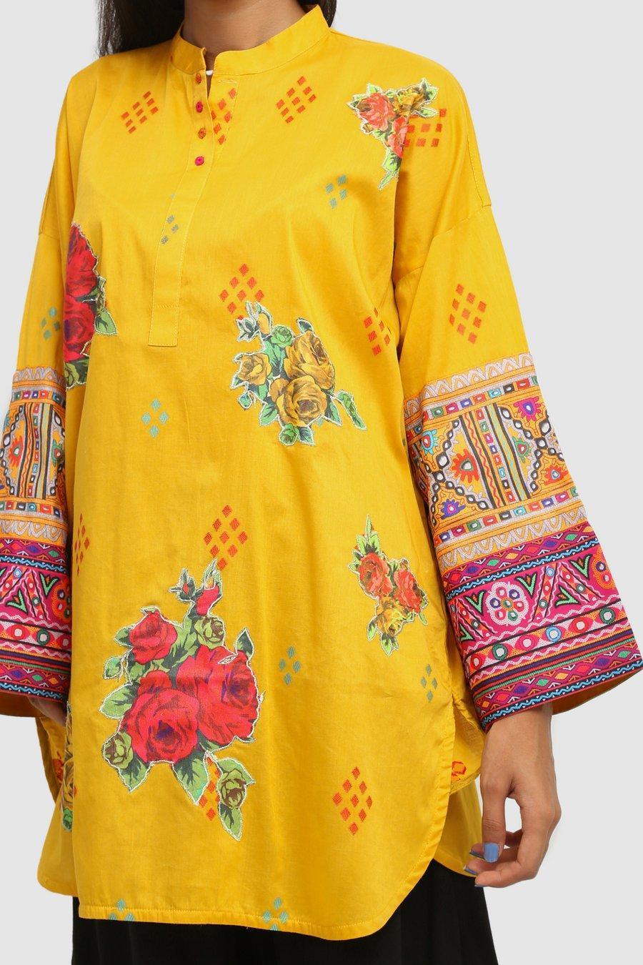 Generation - Yellow Balochi Blend Applique Kurta - 1 PC