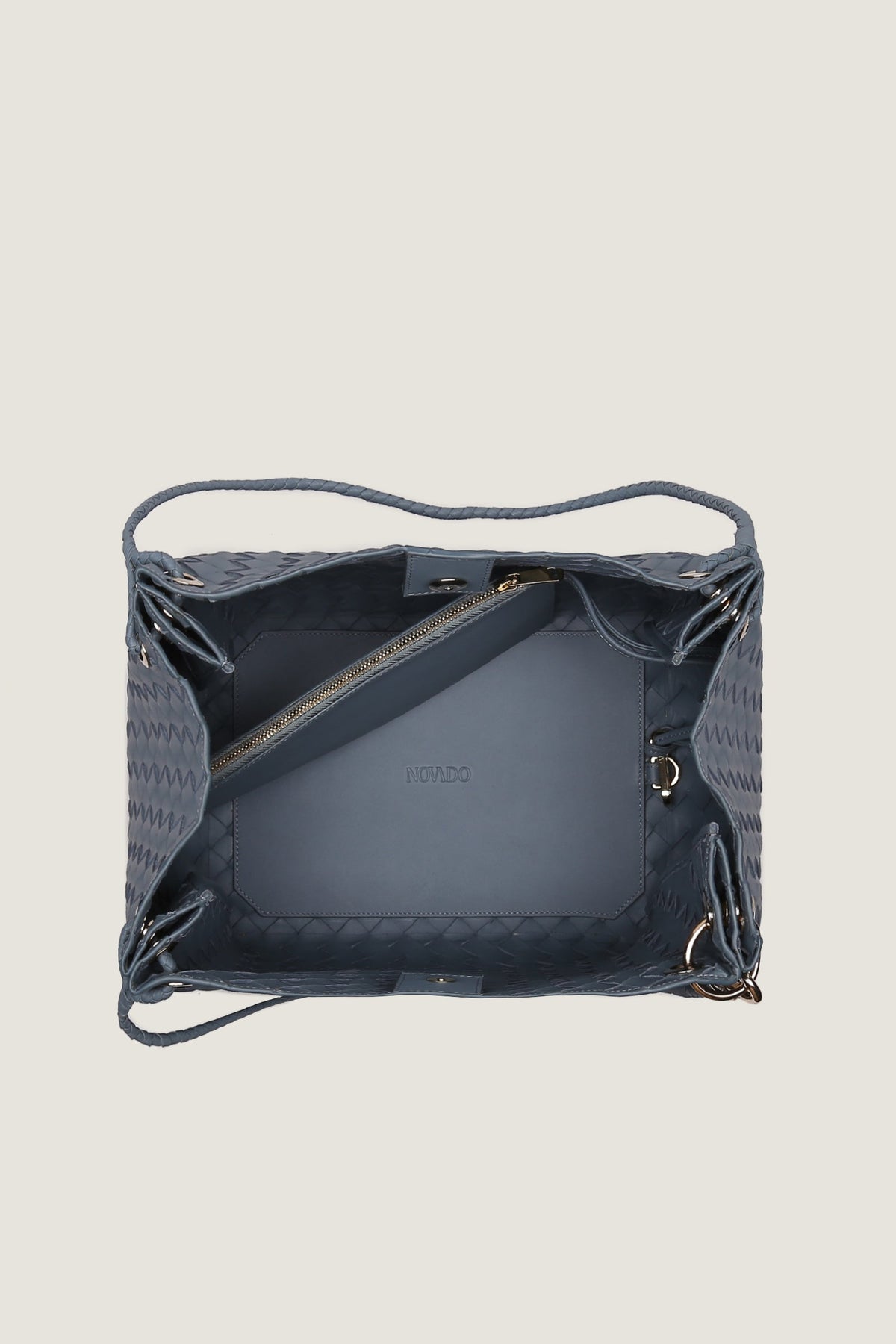 The Large Andiamo, made from full-grain sheep magazine leather, balances sophistication with functionality. Its capacious, partitioned interior boasts one zippered pocket and one open pockets for orderly storage. The adjustable cross-body strap adds versatility, making this chic bag ideal for both relaxed and formal events.