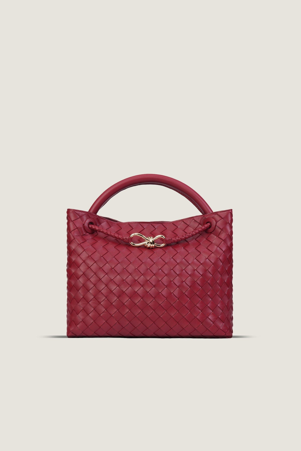 The Medium Andiamo bag in brown, made from full-grain sheep magazine leather, blends elegance and practicality. Its spacious, compartmented interior includes one zippered pocket and two open pockets for organized storage. The sliding cross-body strap offers flexibility, making this stylish bag a perfect choice for both casual and formal occasions.