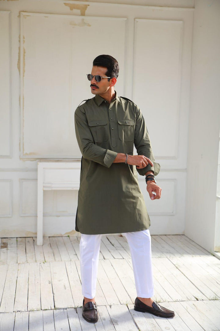 Leon Man - ARMY GREEN KURTA - 1 Piece