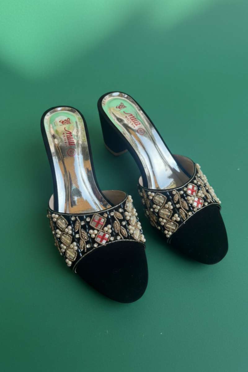 Milli Shoes - Formal Embroidered Block Heels For Women - Black