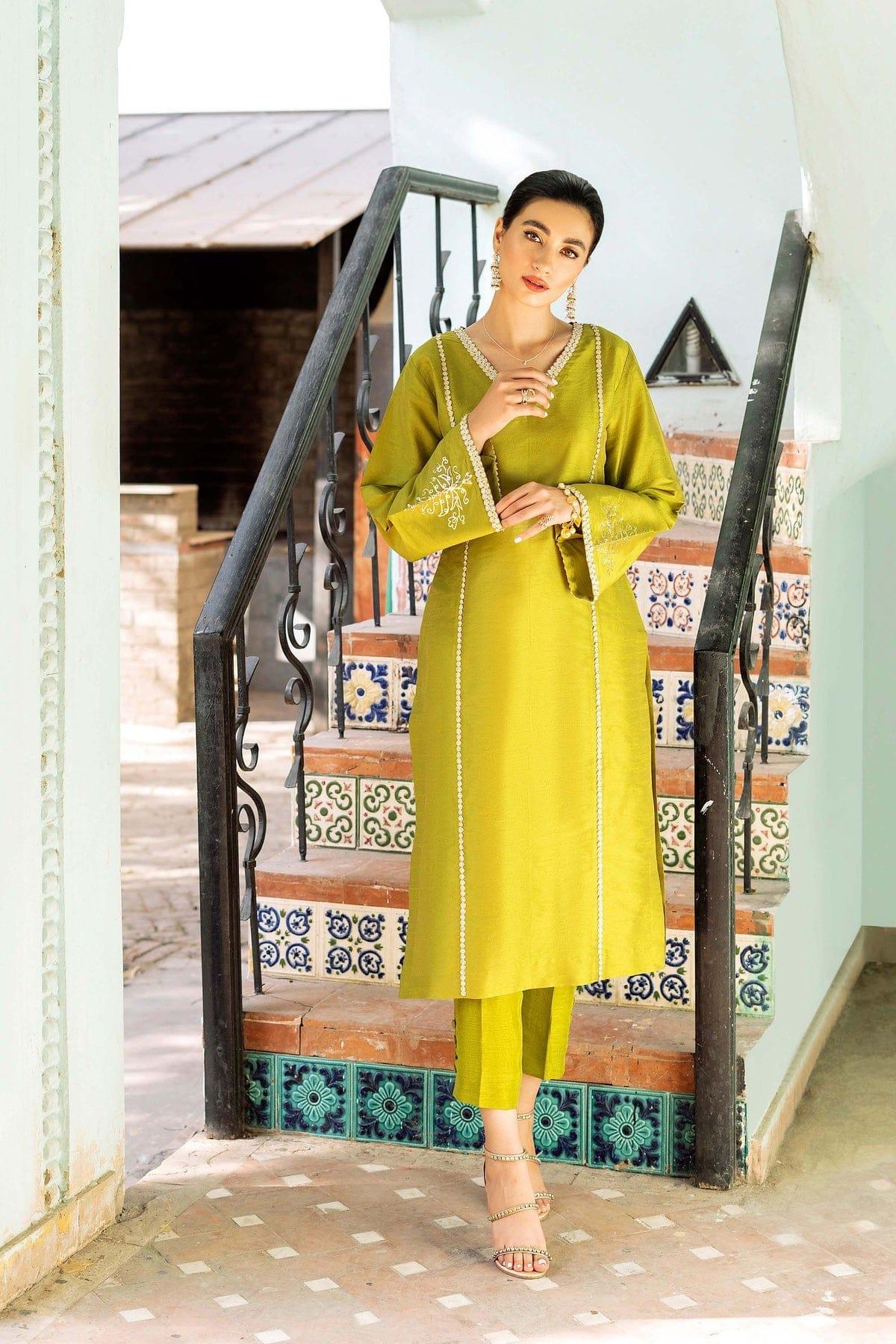 Natasha Kamal - Green Raw Silk Coord Set with Organza Dupatta - 3 Pieces - Studio by TCS