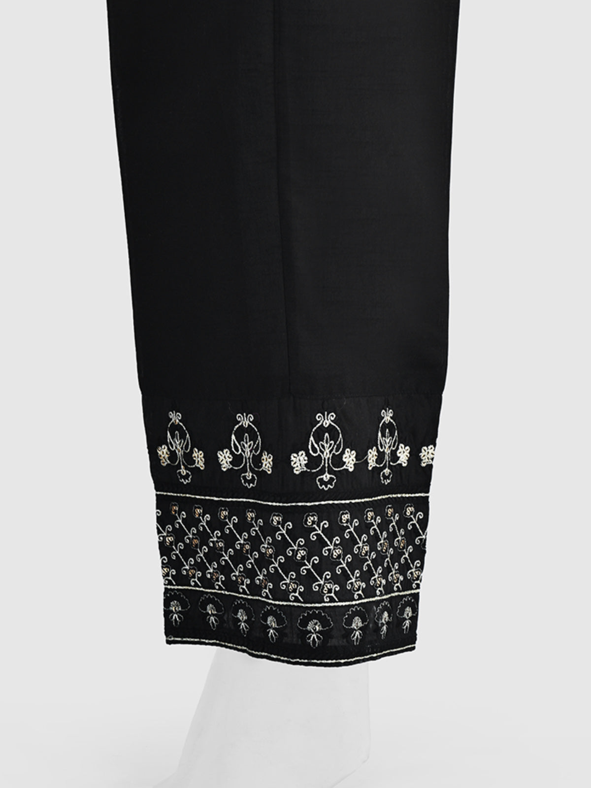 Oaks - Women Black Cotton Silk Embroidered Trouser - 1 Piece