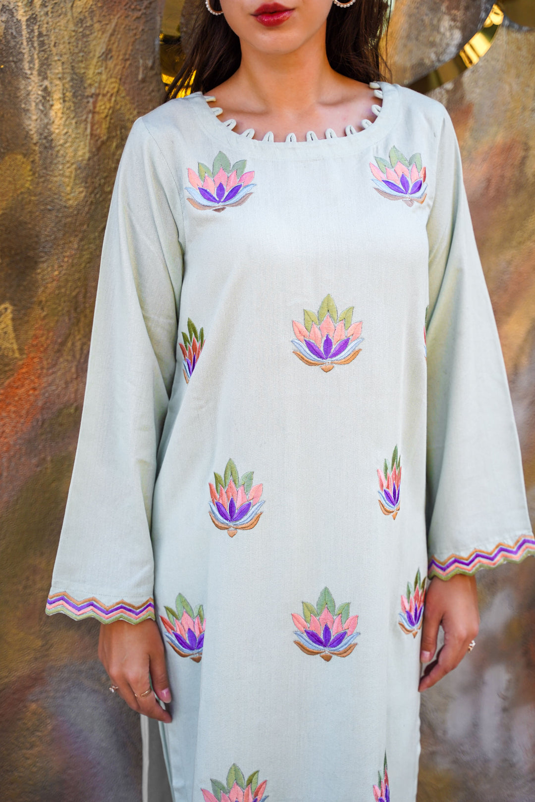 Ombrella - Blooming Flower Teal Khaadi Net Suit For Women - 2 Piece